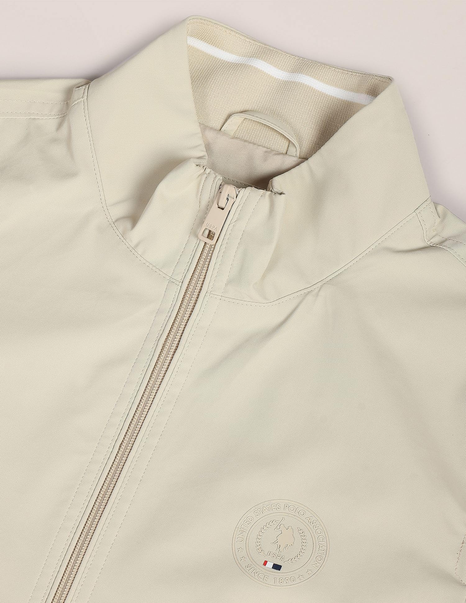 Spruce up your outerwear essentials with this jacket woven from light fabric and cut in a waist-length silhouette with long sleeves.
