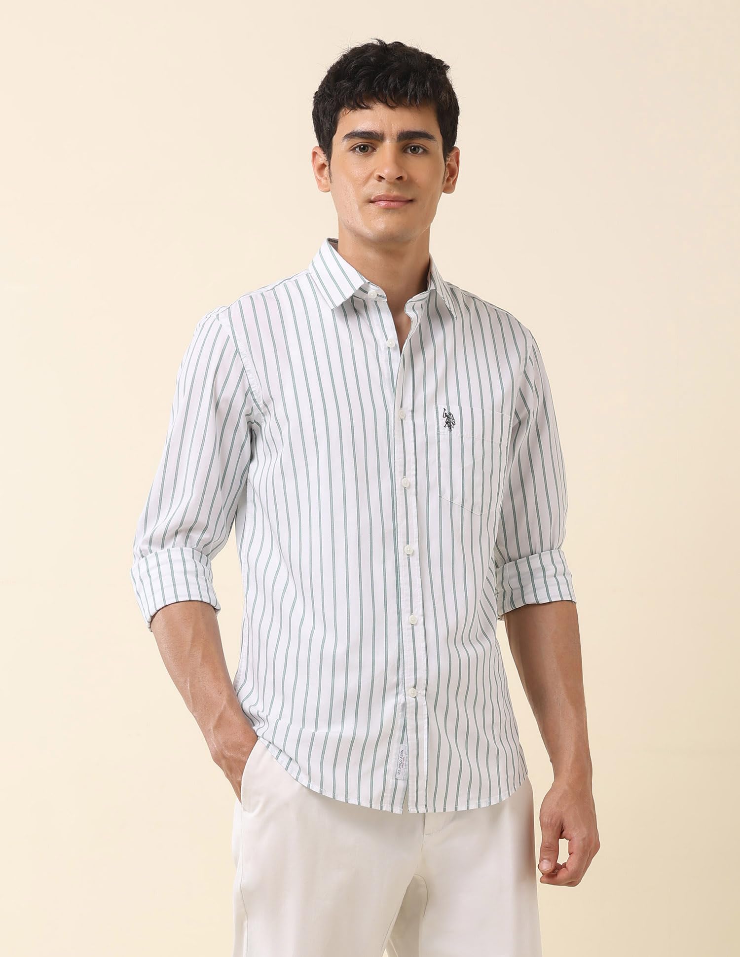 U.S.Polo Association Men's Tailored Fit Vertical Striped Shirt