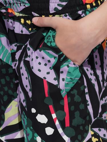 VERO MODA Girl Tropical Print Cotton Regular Fit Mid Rise Black Casual Shorts