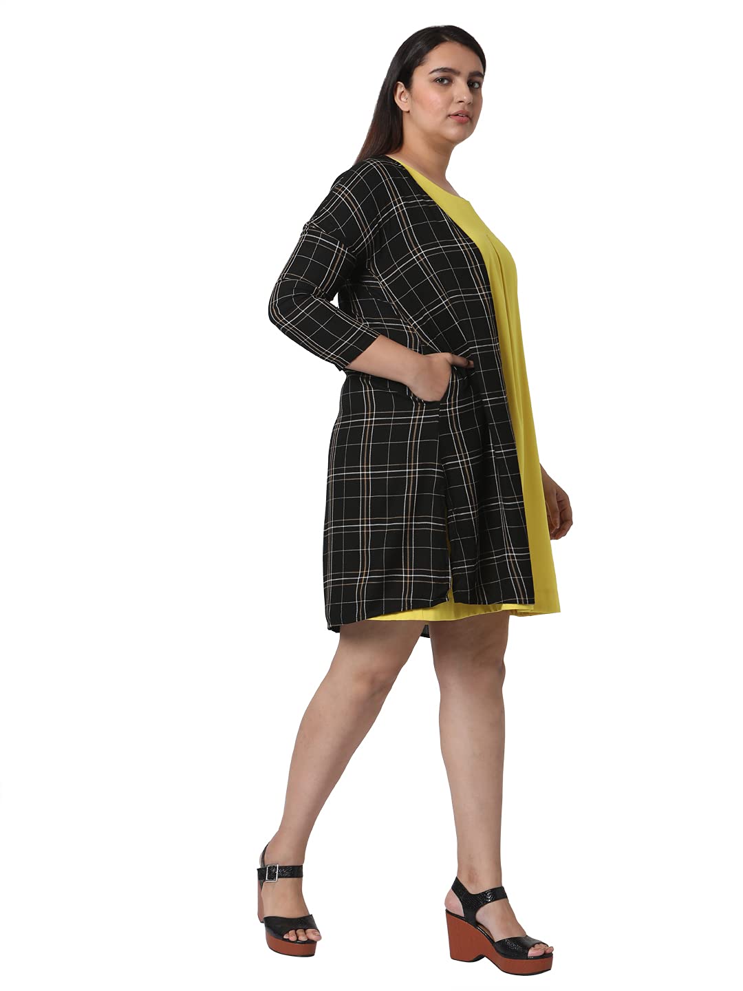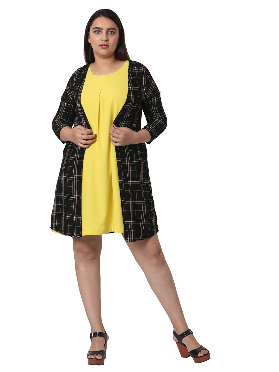 Vero Moda Curve Women 100%Viscose Checks Black Casual Shrug