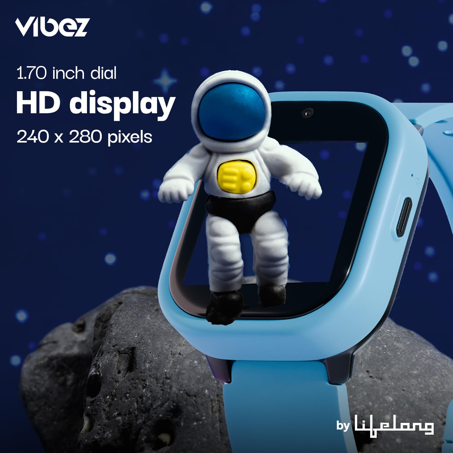 Vibez Smart Watch for Kids – SIM Card, 4G Voice Calling, GPS Location Tracker, Voice Chat, Video Call, Geo-Fencing, SOS Emergency, Health Monitoring Baby Smartwatch & Parental Control (Miracle, Blue)