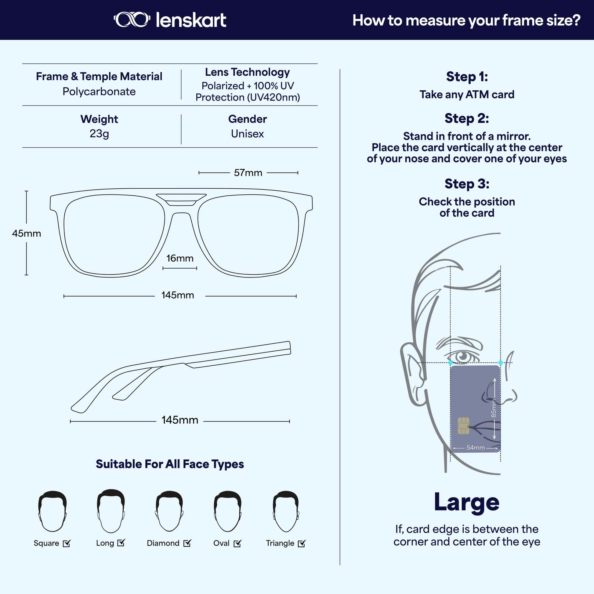 - FRAME SIZE:- Large | Frame width: 145mm | Frame Height: 45mm | Frame Dimensions: (57-16-145)mm