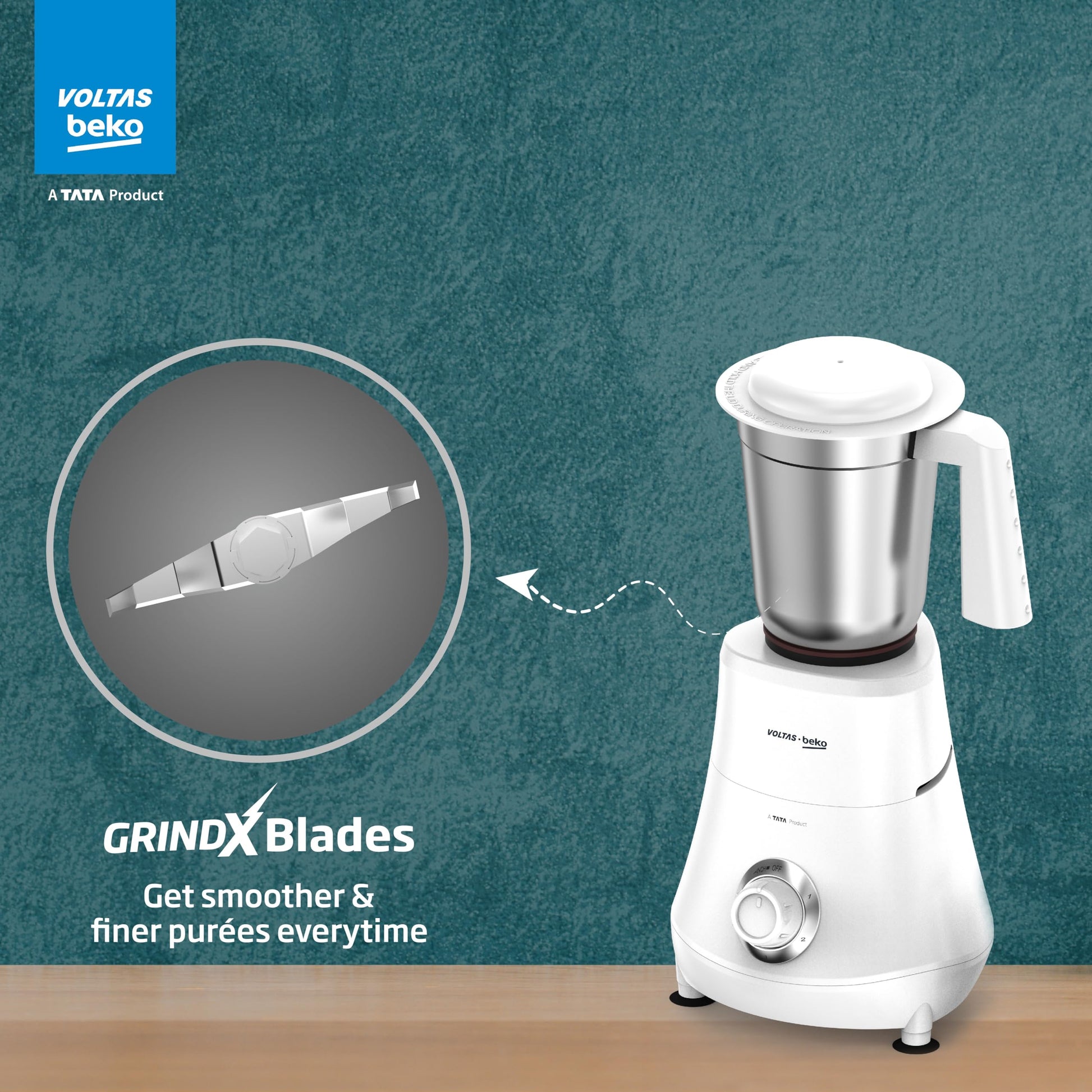 Voltas Beko, A Tata Product Powerfull 500 W Mixer Grinder with GrindX Technology (G5003HP-WH | 3 Jars | White)