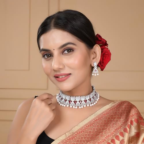 VOYLLA Cz Elegance Gems Adorned Choker Necklace Set For Women|Womens Jewellery Set|Gift For Women|Womens Gift|Gift For Her|