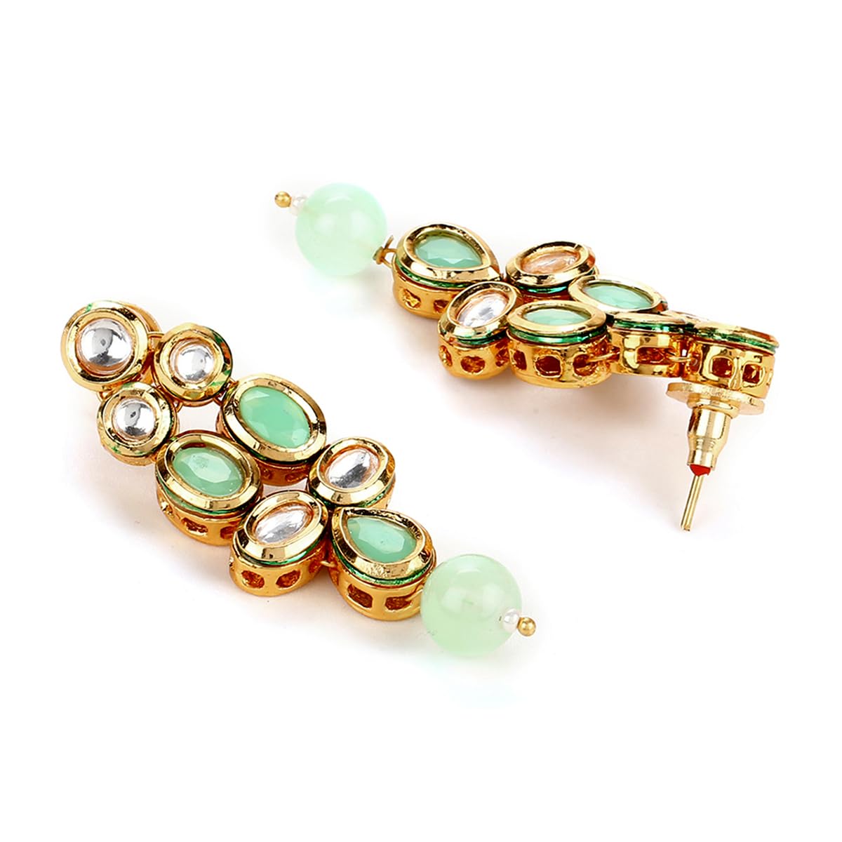 This unrivalled set of light green beaded set awaits your wearing with plethora available all around. Set your eyes on this and you shall not be disappointed by its design. It's worth all your money.