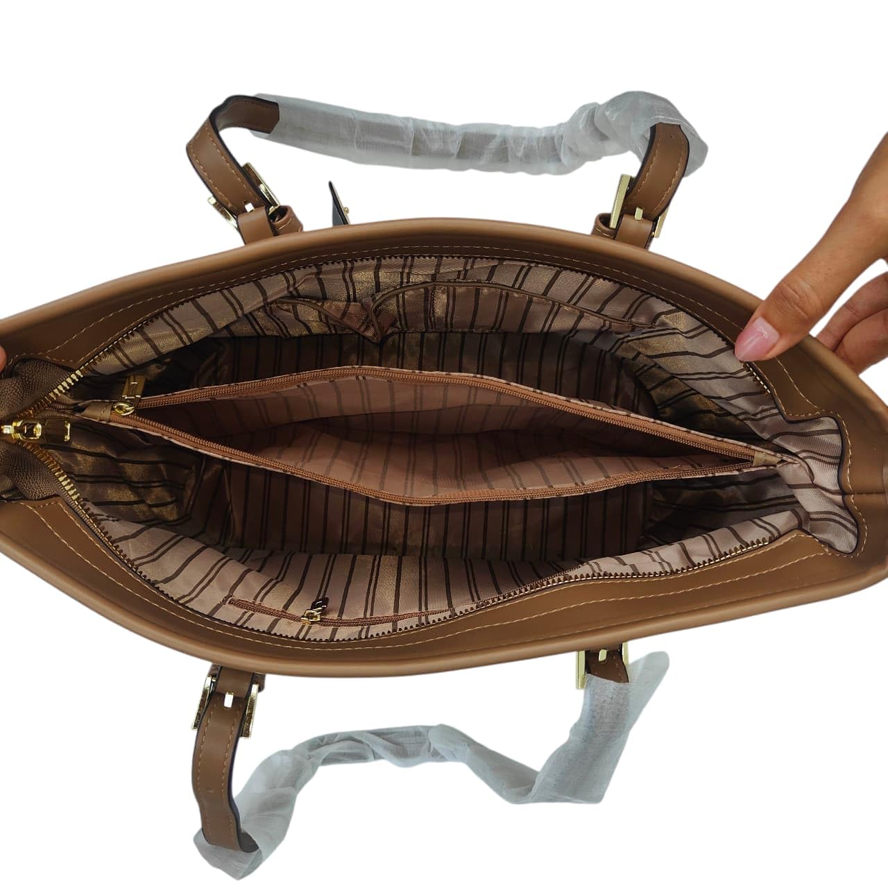 - 1️⃣ girls💼 Elegant Design: Stylish monogram-patterned tote handbag with beige and brown finish — perfect for daily, office, and casual outings. 2️⃣ 👜 Premium Material: Crafted from high-quality material that gives a luxurious look and long-lasting durability. 3️⃣ 🧳 Spacious & Organized: Features 2 large main compartment, 1 inner middle zip and 2 small pockets, 1 inner side zip — keeps phone, wallet, and cosmetics neatly organized, Key pouch. 4️⃣ 👝 Perfect Gift Choice: Ideal for birthdays, festivals, or special occasions — a stylish and practical gift for women