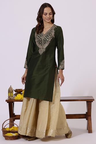 - This Golden W Skirt Is A Stunning Fusion Of Ethnic And Western Styles. Featuring Eye-Catching Sequin Details And A Full-Length Design, It'S Perfect For Special Occasions. The Woven Construction Adds Elegance To This Show-Stopping Piece.