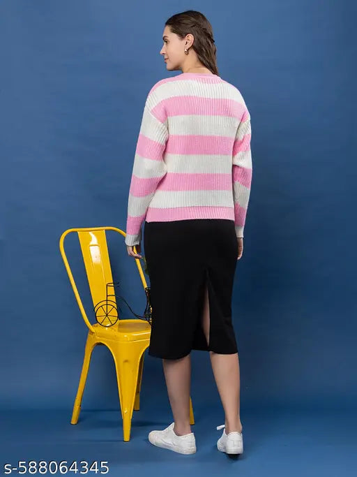Wear Lusso Women Sweater, Womens Striped Sweater, Round Neck Winter Wear, Stylish Pullover for Women, Ladies Woolen Sweater, Womens Winter Outfit, Casual Winter Wear, Warm Striped Pullover, Elegant Winter Sweater, Wear Lusso Womens Fashion