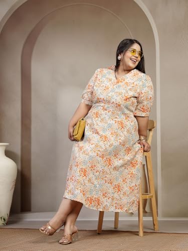 Women Plus Size Floral Print Fit & Flare Midi Dress (LDR24015-MULTIPRINT-7XL)