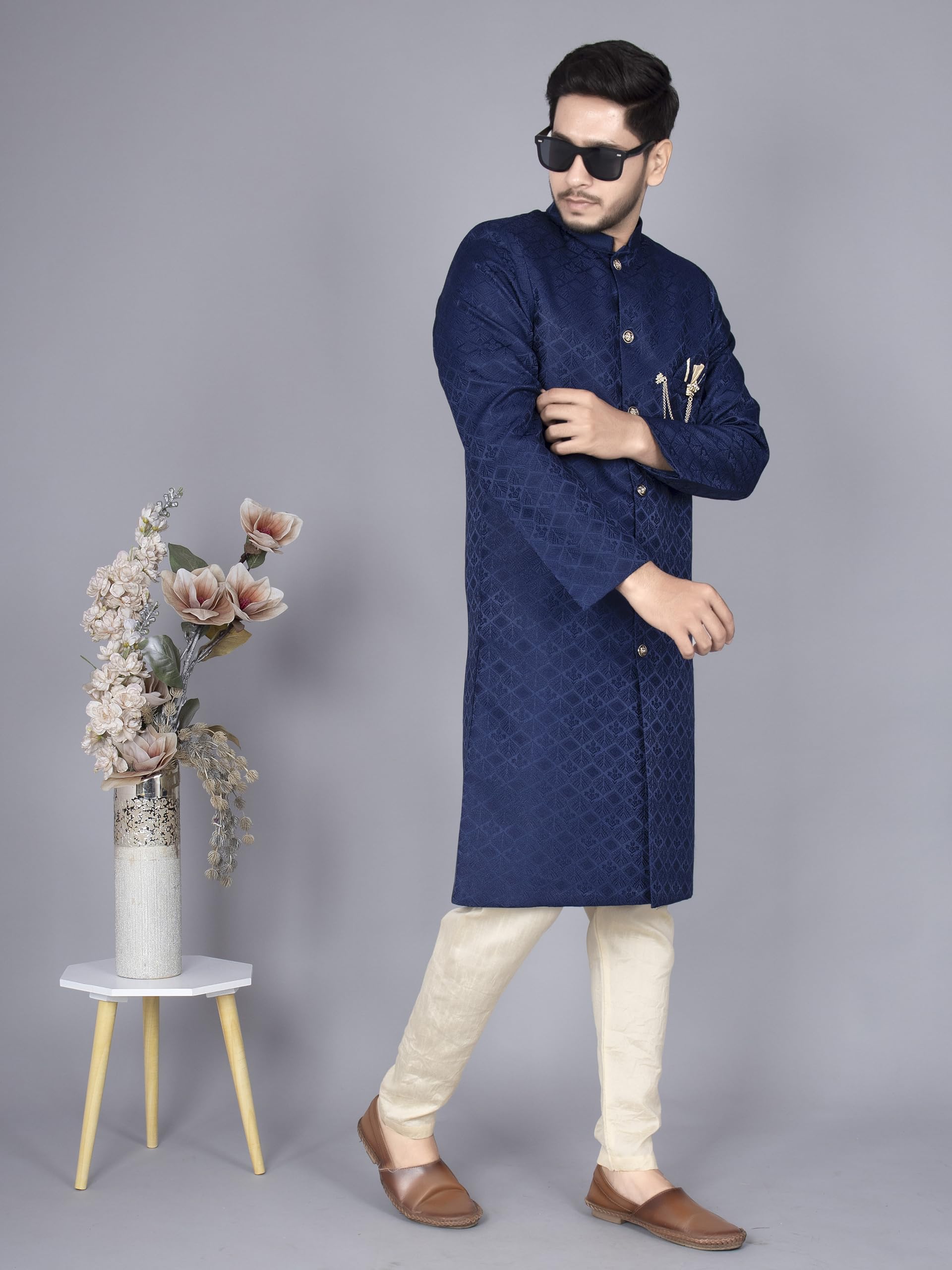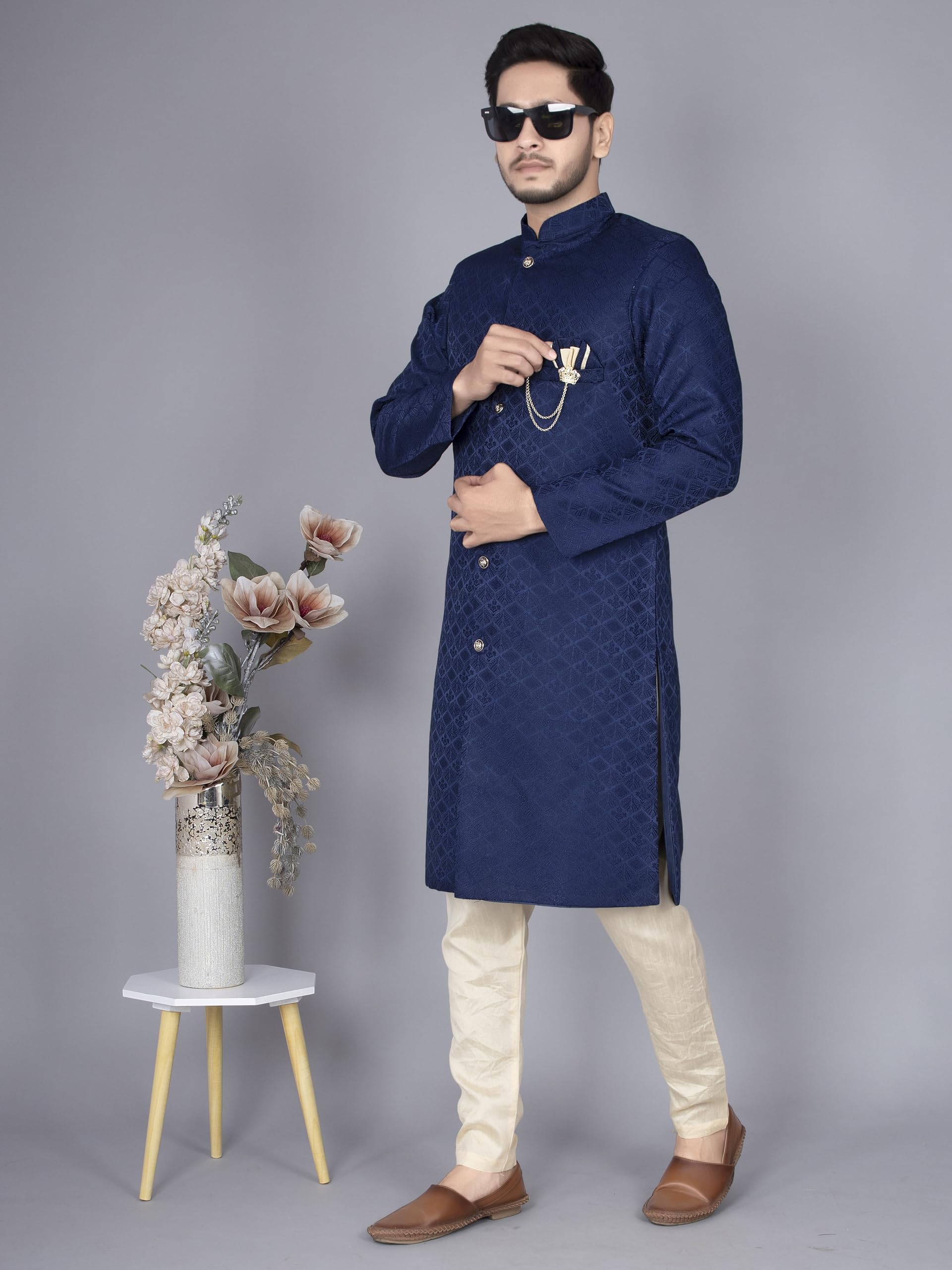XEPON Indo Western Sherwani Set For Men (XL, Blue)