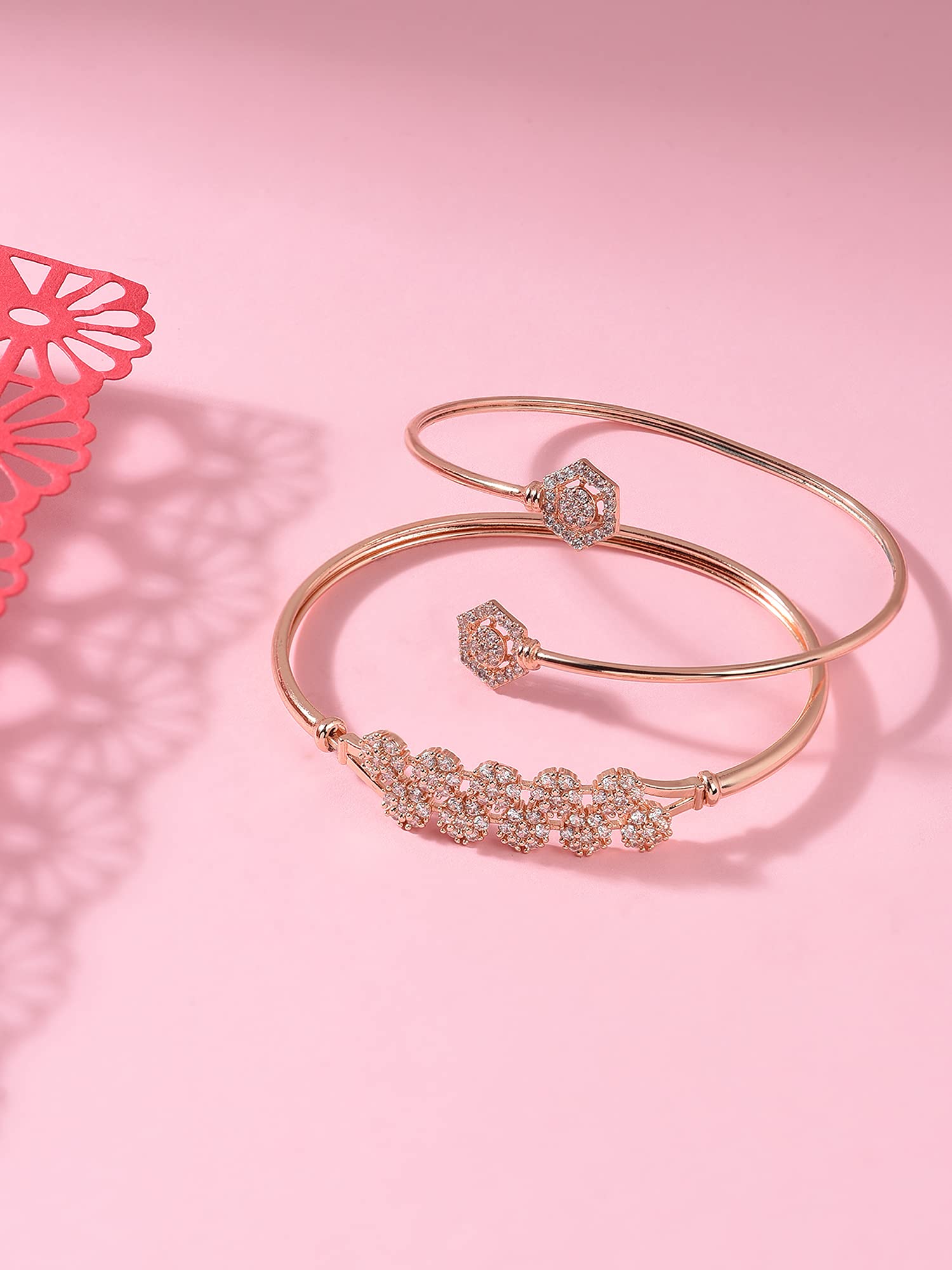 ZAVERI PEARLS Set of 2 Rose Gold Contemporary Cubic Zirconia Brass Kada Style Bracelet For Women-ZPFK11116