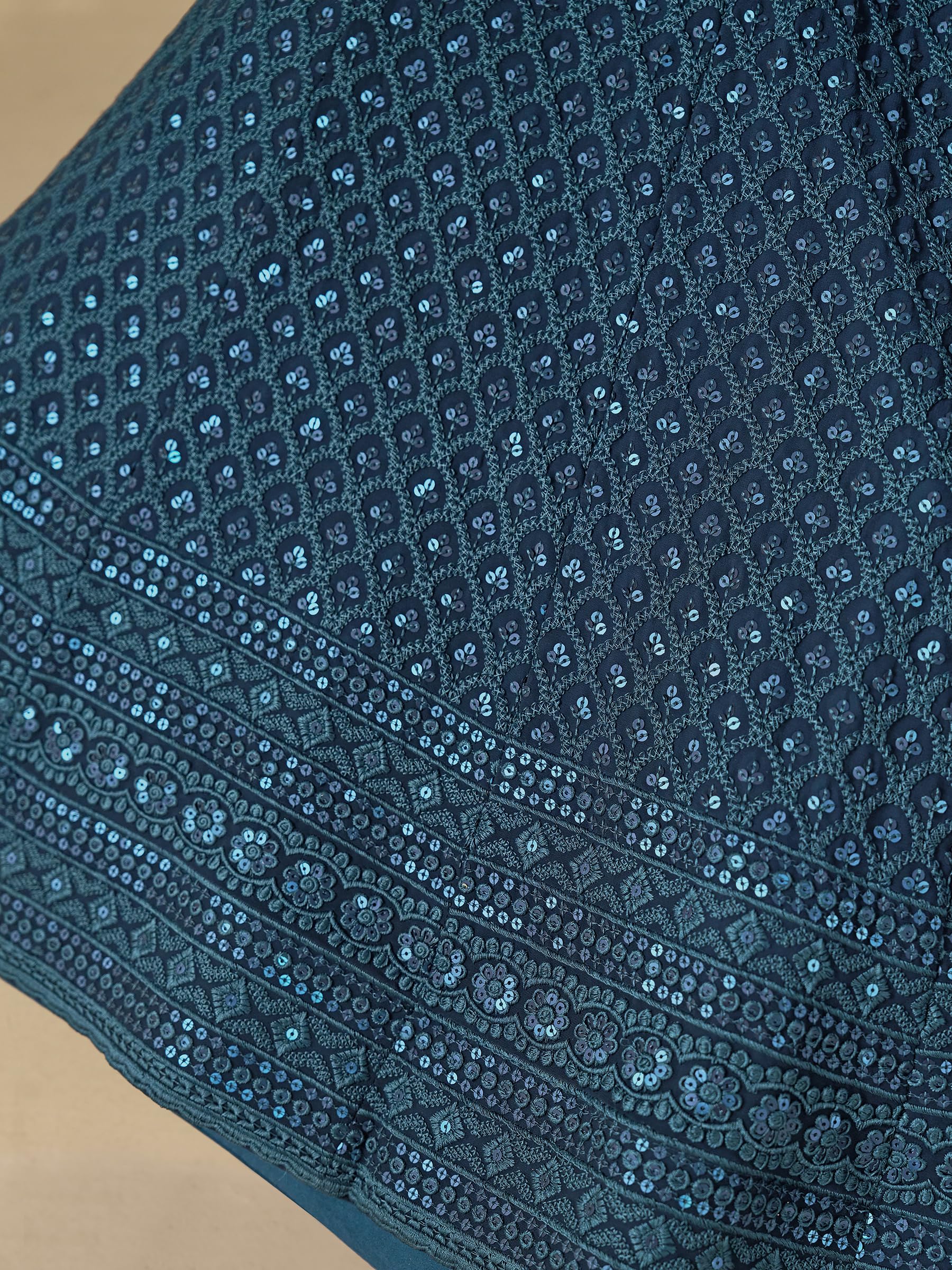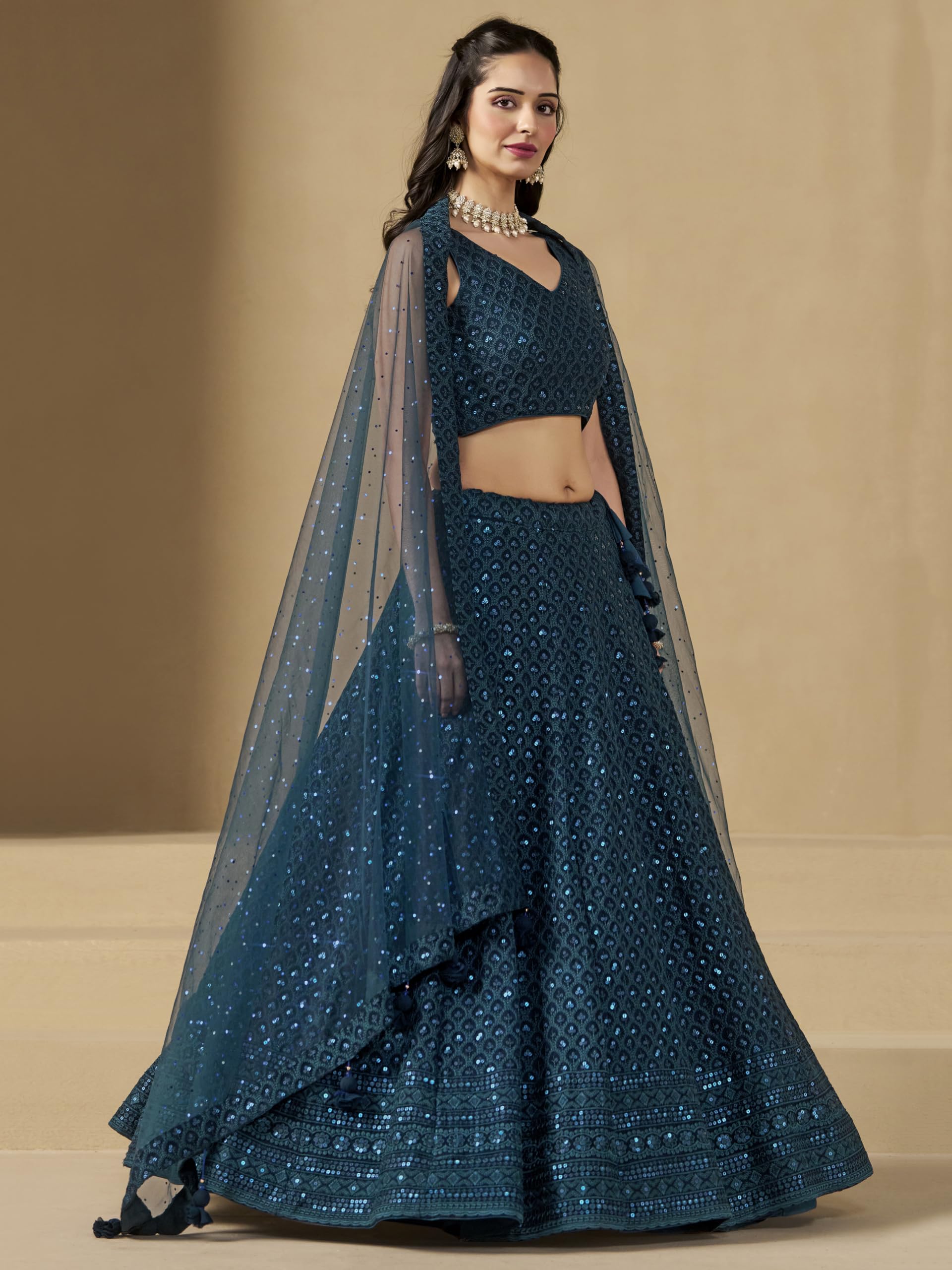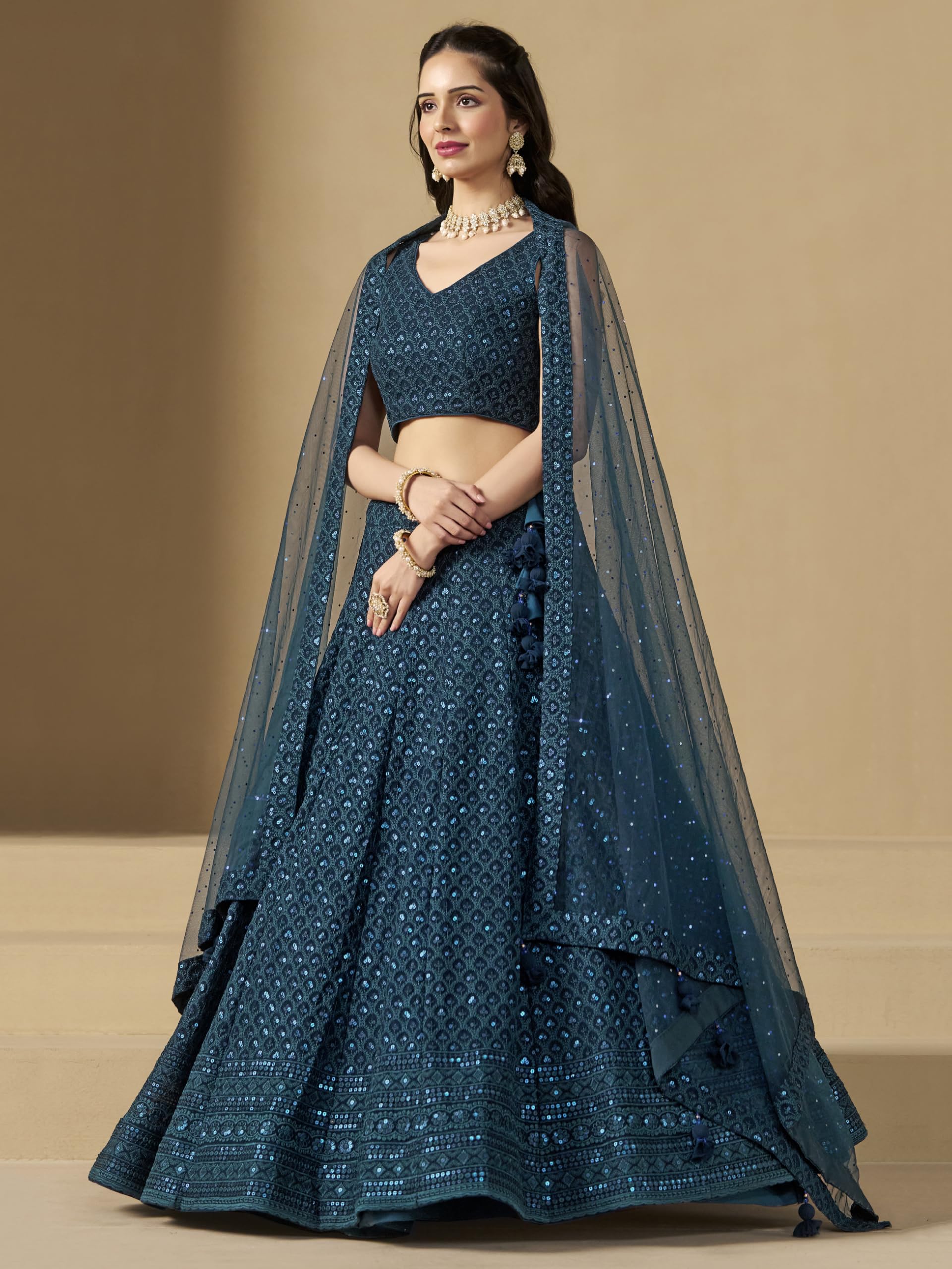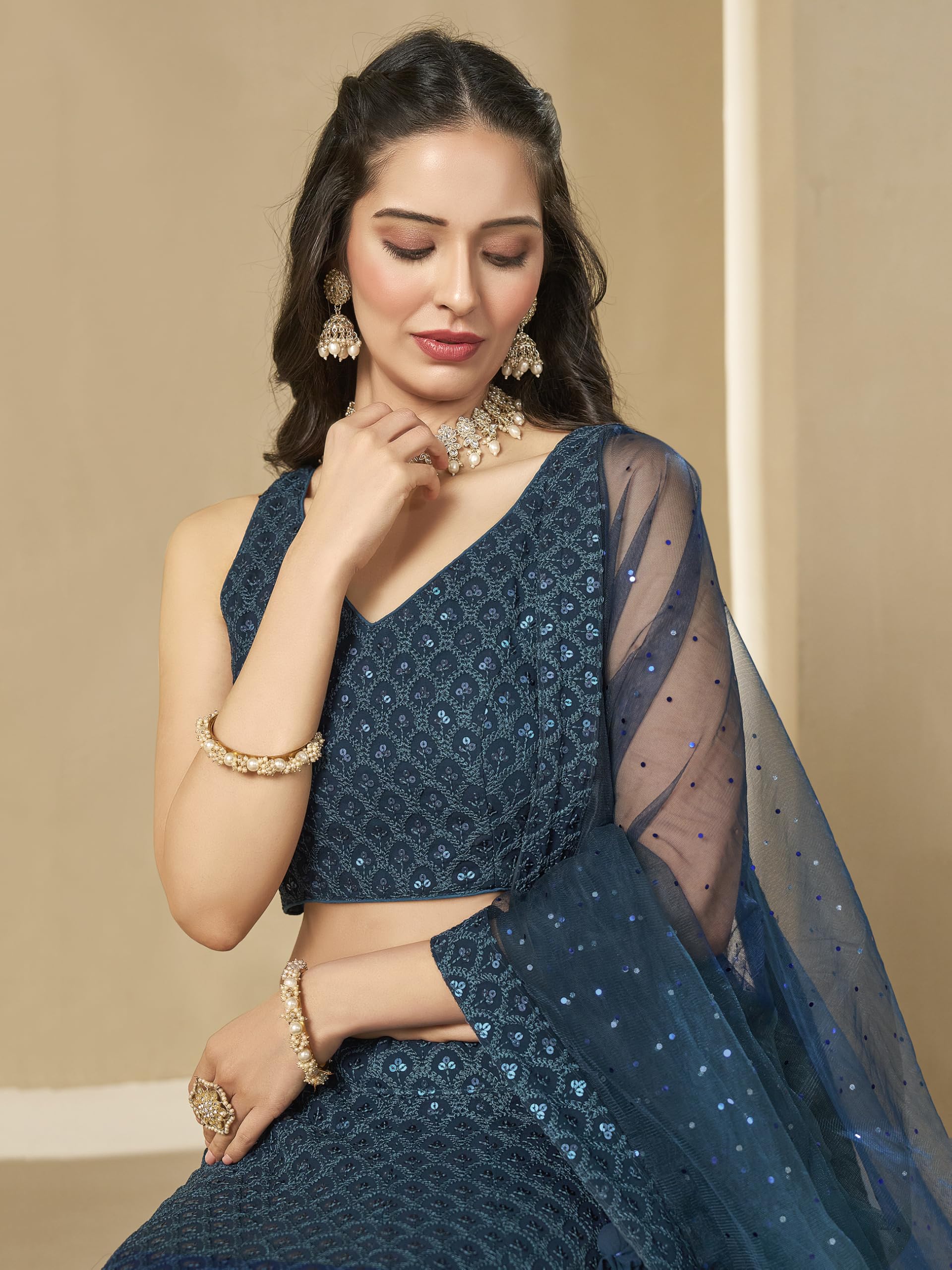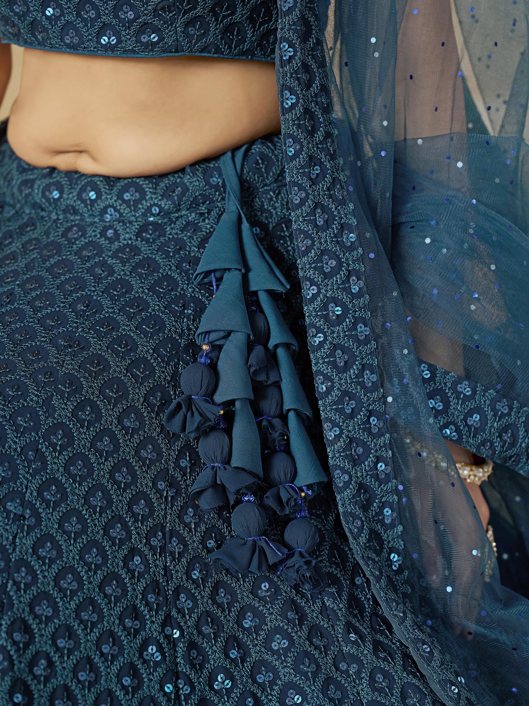 Zeel Clothing Women's Sequins Thread Embroidered Georgette Lehenga Choli With Dupatta (5124-Blue-Women-Lehenga-Choli-New; Free size) (Blue)