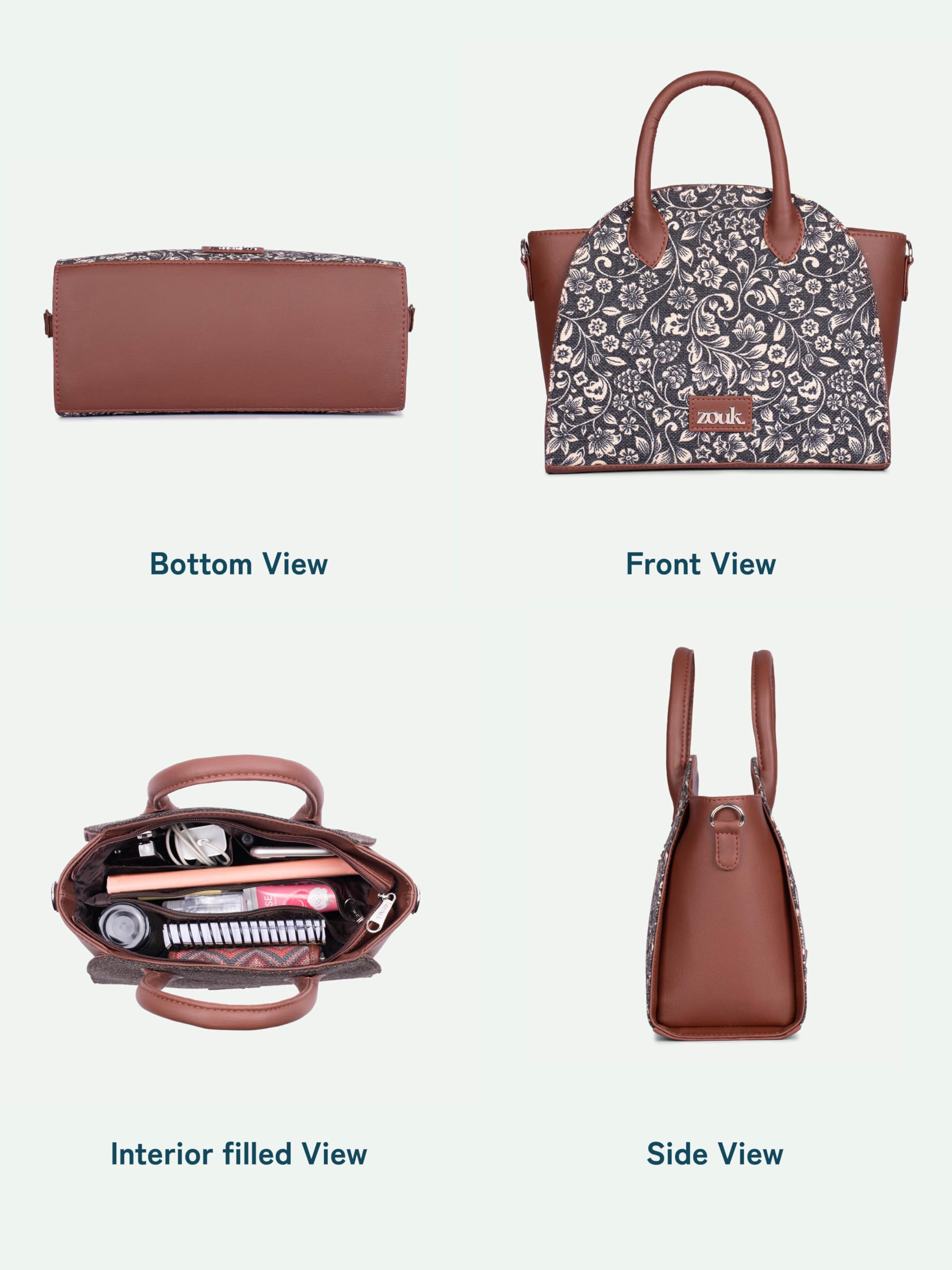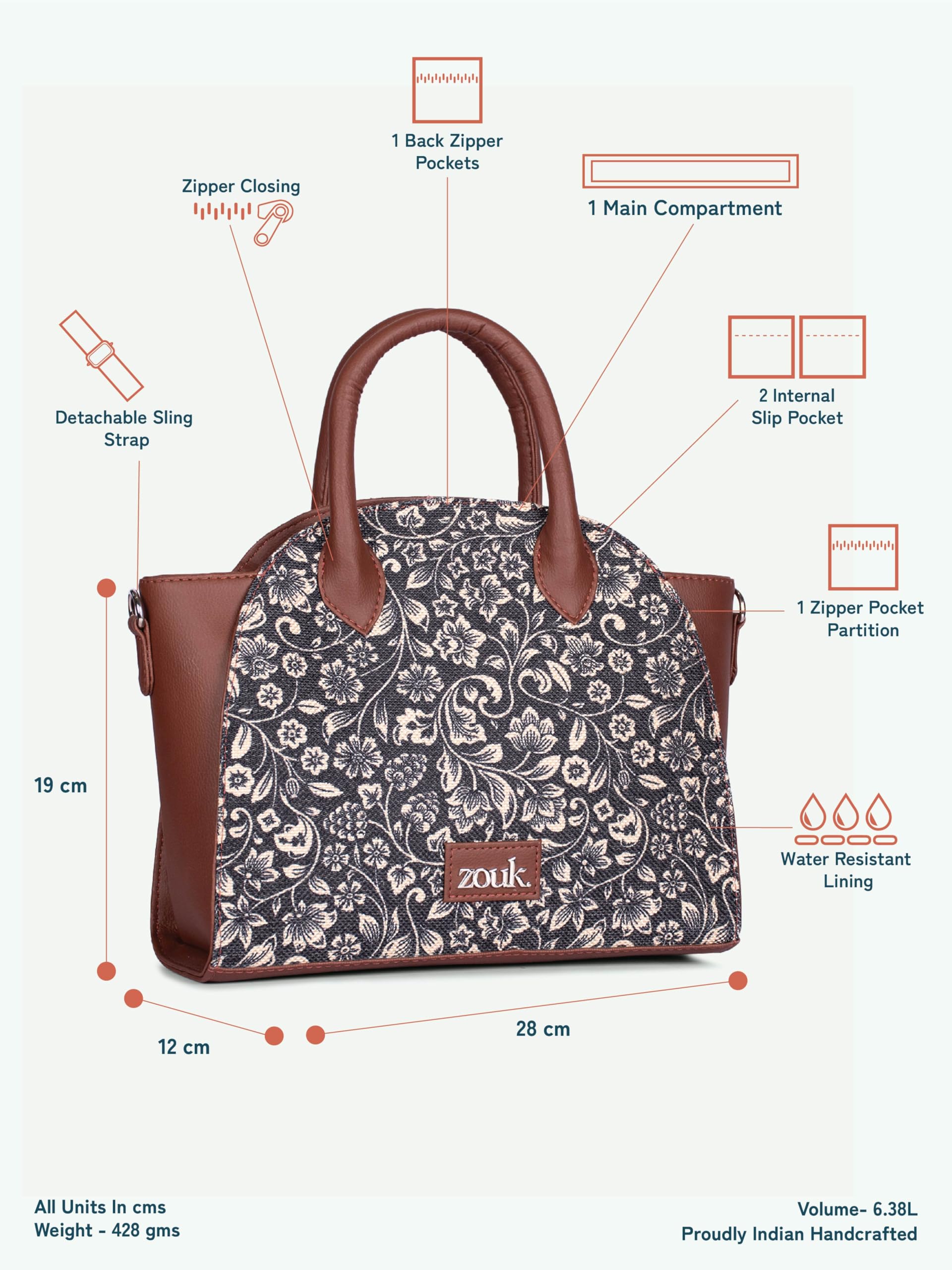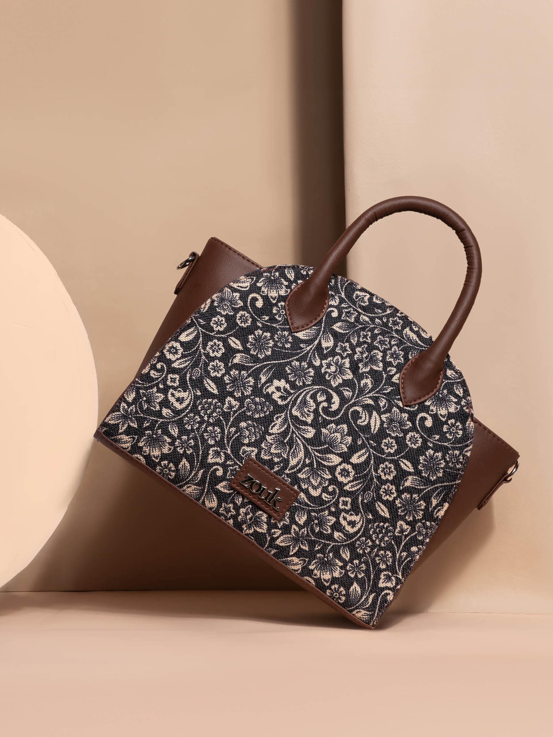 ZOUK Konkona City Satchel Bag - FloMotif | Jute | Vegan Leather Handcrafted With Detachable Sling Strap | Black