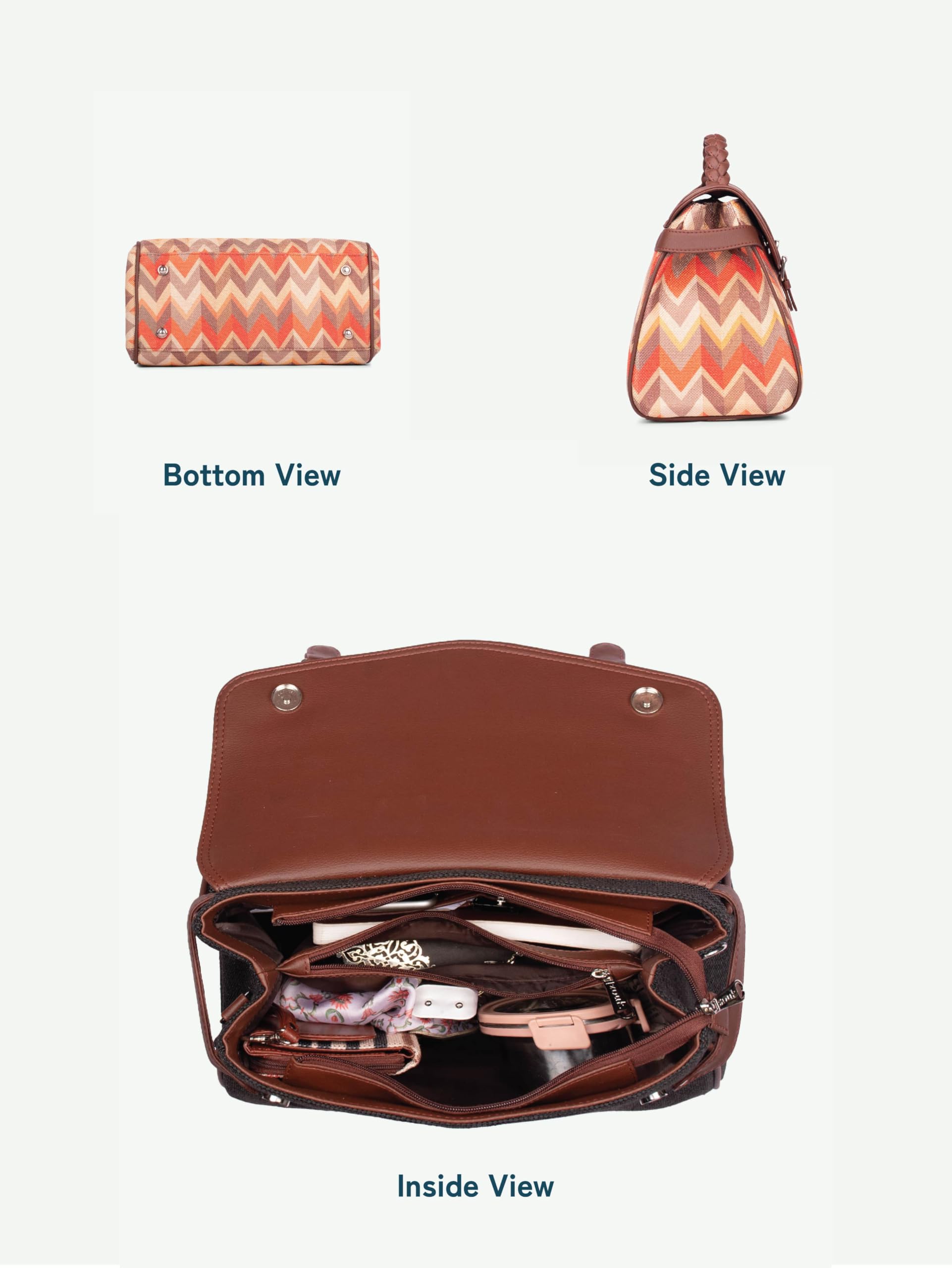ZOUK Konkona Heritage Satchel Bag - Tidal Wave | Jute | Vegan Leather Handcrafted With Detachable Sling Strap| Orange