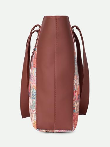 ZOUK Kutch Gamthi Abstract Printed Women Jute Vegan Leather Multicolor Side Tote Bag For Ladies With Double Handle