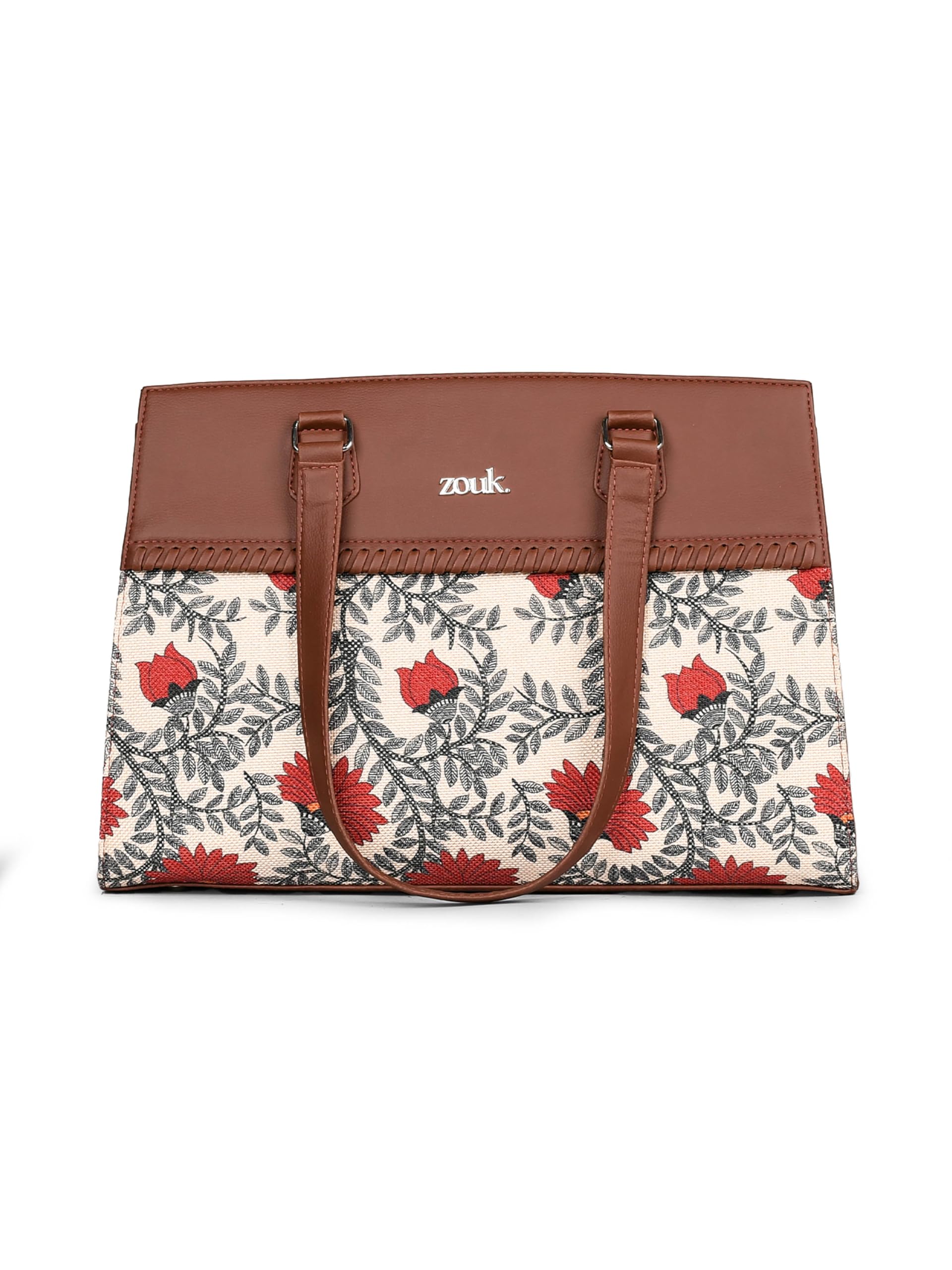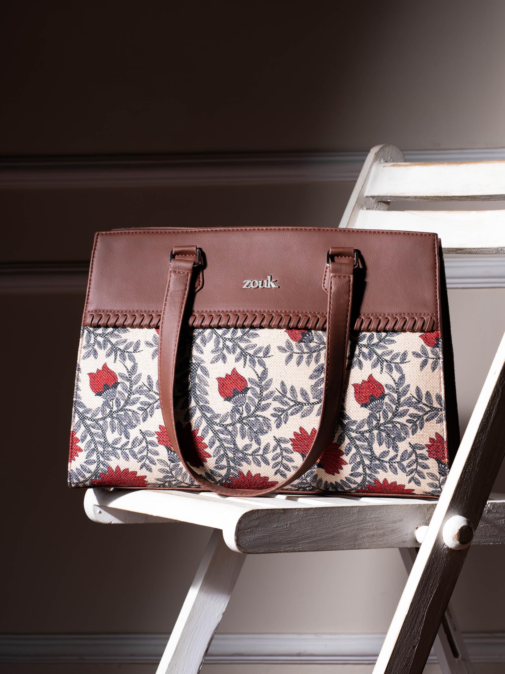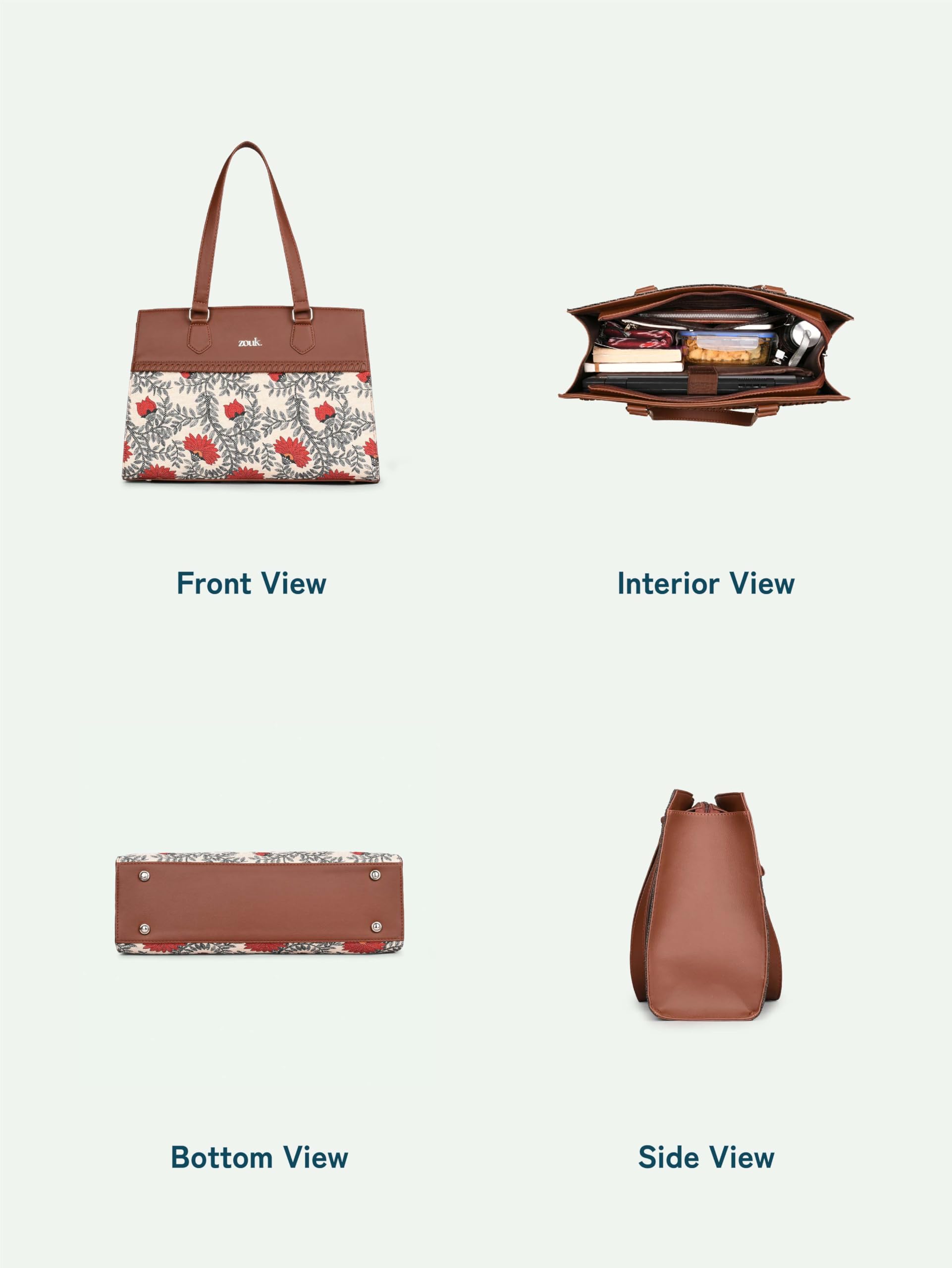 ZOUK Nawabi Couture Statement Business Bag | Jute | Vegan Leather Handcrafted Shoulder Bag Ideal For Office Use| Beige and Red