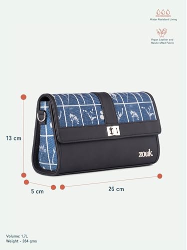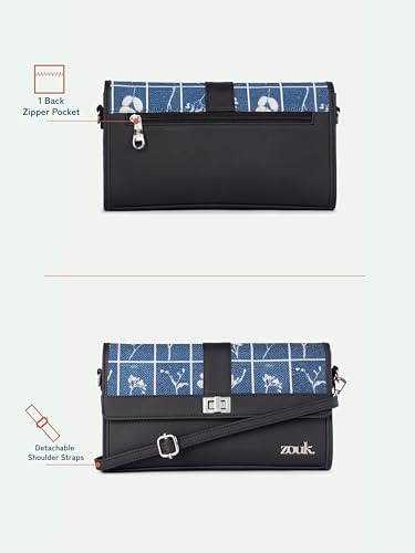 ZOUK Rhea Kapoor Tarini Clutch for Women | Elegant Flap Closure Evening Clutch | Detachable Adjustable Strap | Party & Formal Event Purse | Lakshadweep Azure