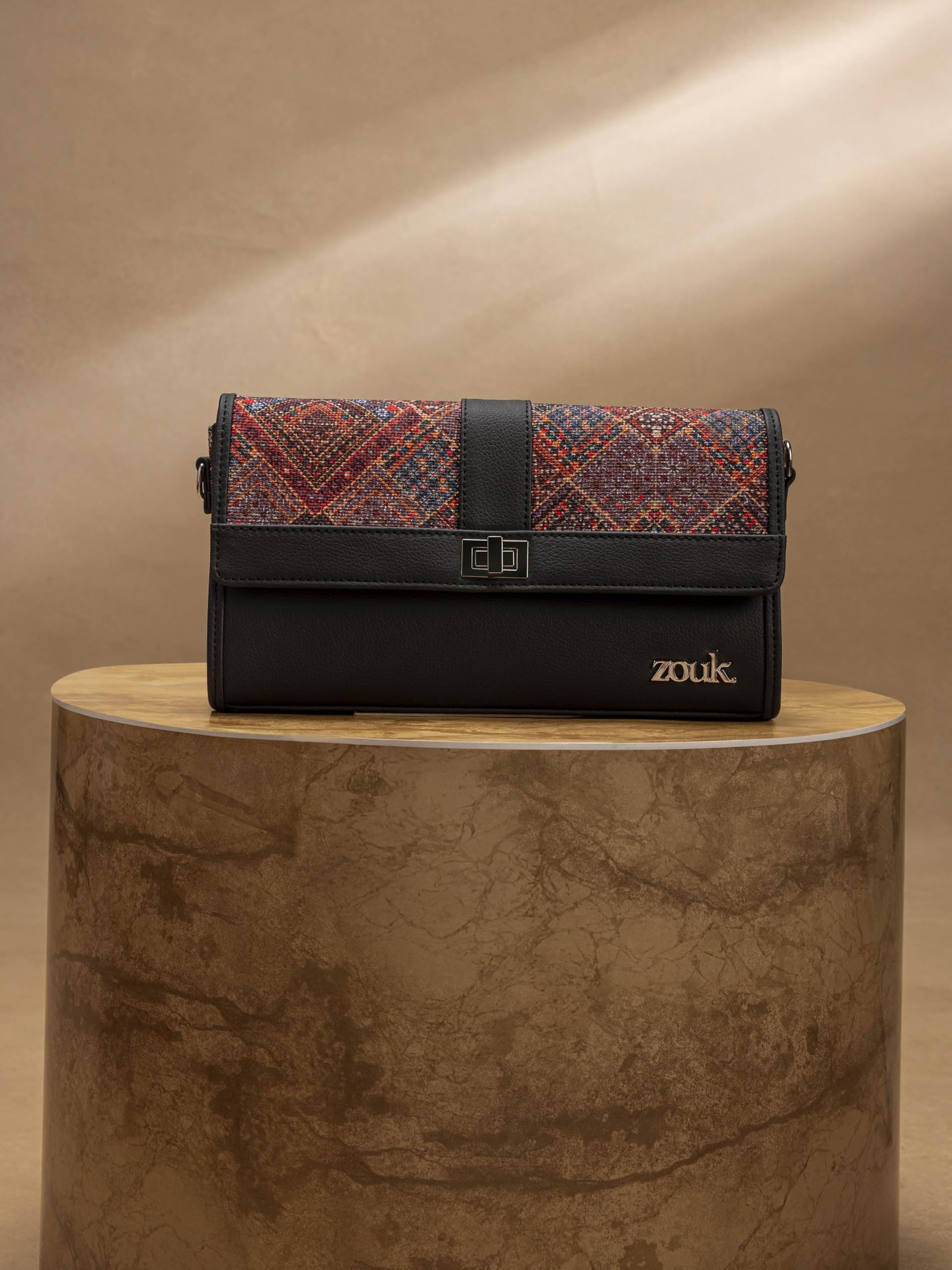 ZOUK Tarini Clutch - Bhuj Rabari | Chic & Elegant Vegan Leather Clutch for Women | Abstract