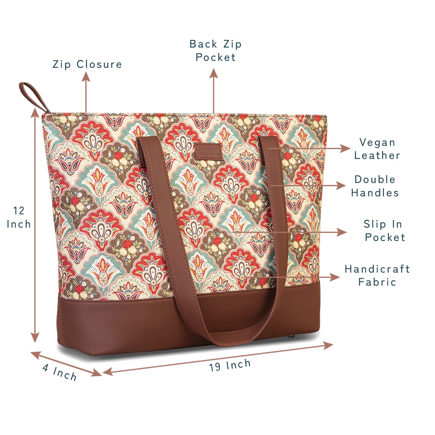 ZOUK Women's Handcrafted Mughal Art Multicolor Shoulder Tote Bag and Handbag for Office and College