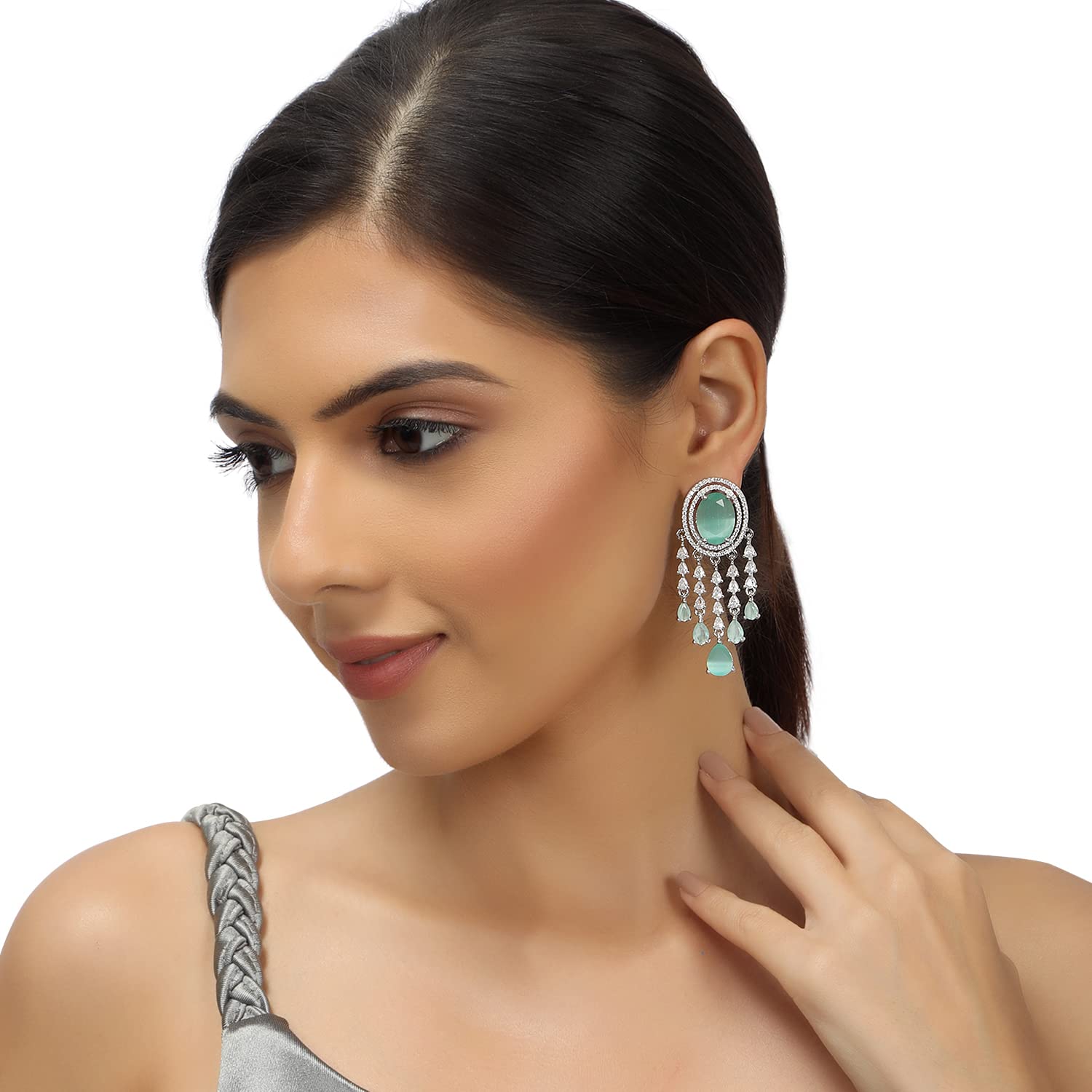 AccessHer Chandelier Earrings for Women | American Diamond Drop Earrings with Turquoise Blue Semi-Precious Stones | Elegant Traditional Jewelry for Special Occasions