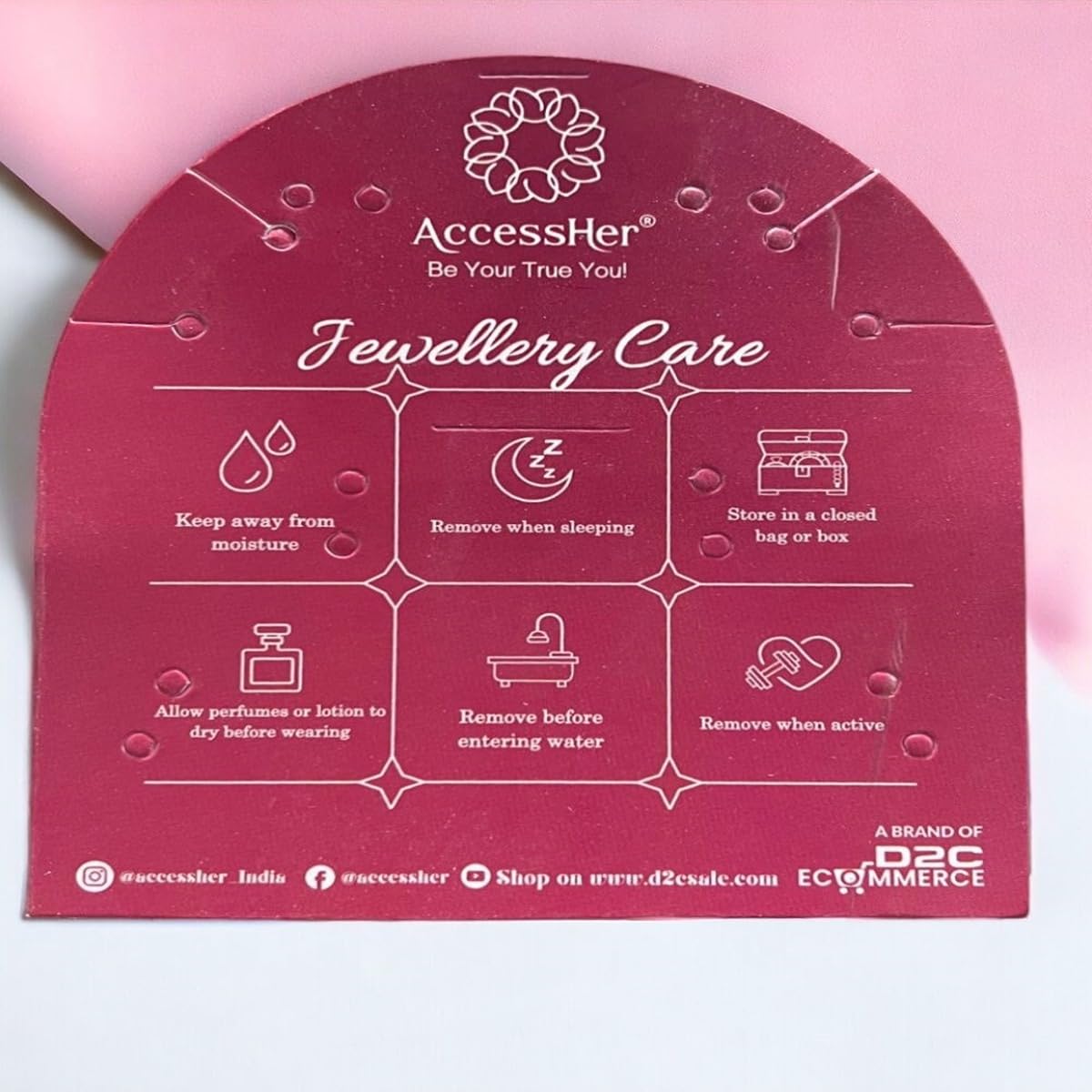- Jewellery Care: To maintain the shine, avoid direct contact with water, perfumes, and chemicals. Store in a dry, cool place when not in use.