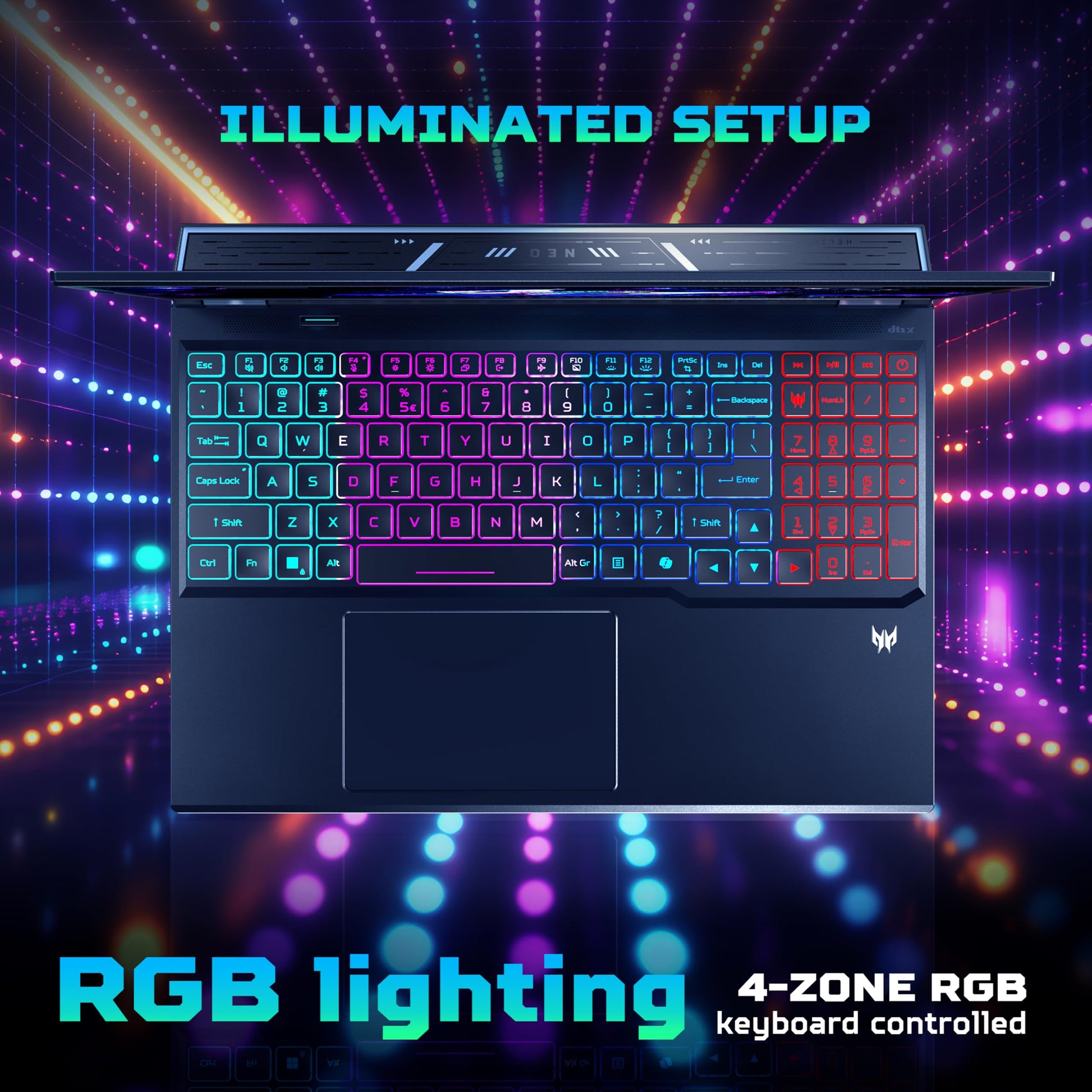 - Keyboard :103(US)-/104(UK)-key, FineTip RGB-backlight keyboard with independent standard numeric keypad, international language support