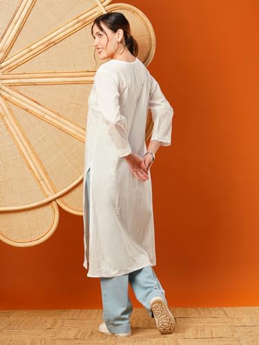 Ada Indian Hand Embroidered Chikankari Cotton Kurti Kurta Tunic for Women 5XL100376 White