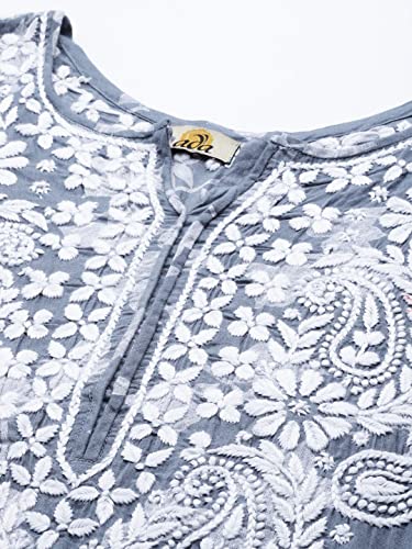 Ada Women Cotton Regular Fit Kurta Hand Embroidered Lucknowi Chikankari Tunic Kurti A411266 (Grey, XS)