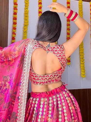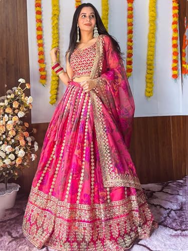 AG Clothing Women's Organza Semi Stitched Lehenga Choli With Dupatta | Floral Digital Print With Sequin Embroidery Pattern | Traditional, Wedding, Ethnic Wear Lehenga (ZC-7072-Pink)