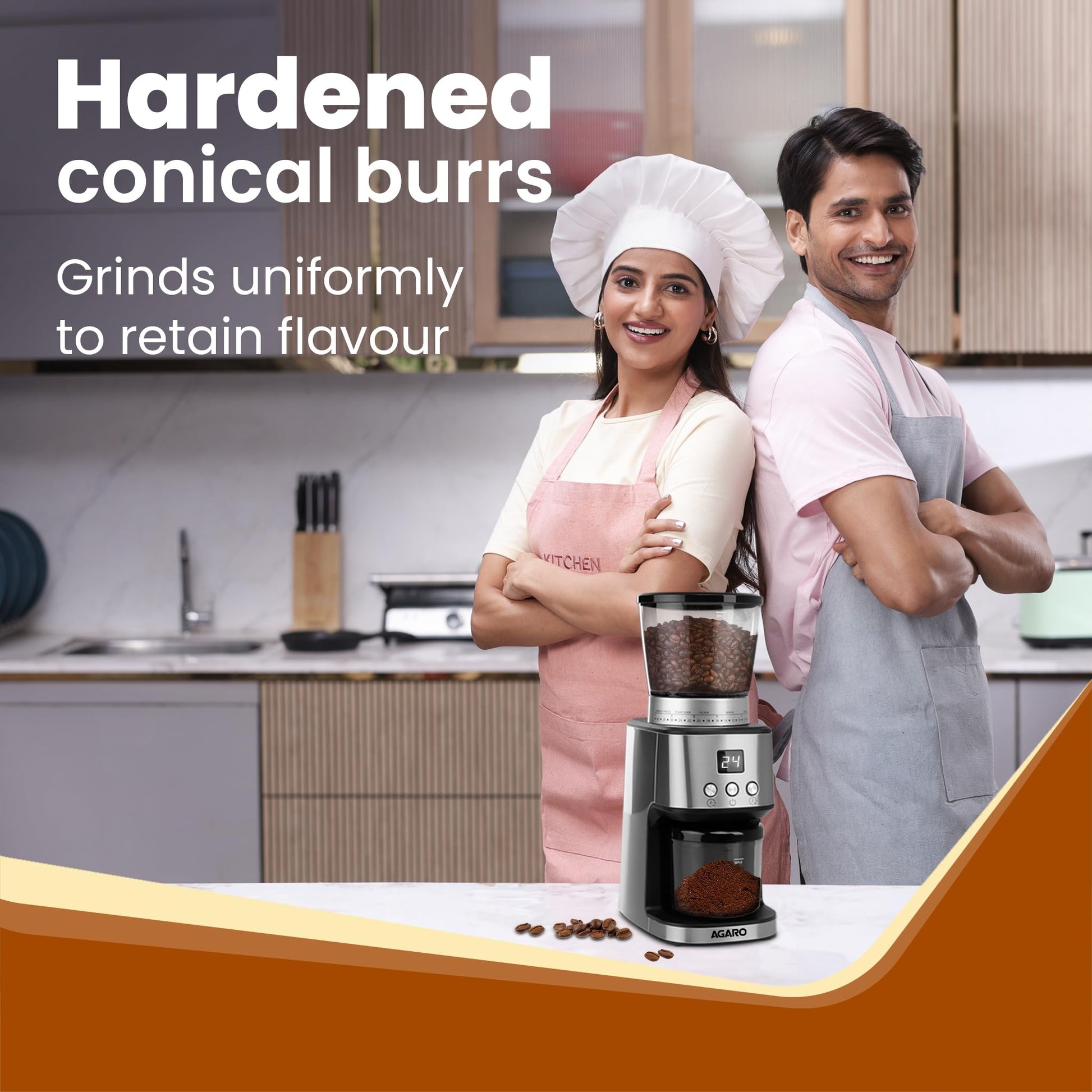 AGARO Stainless Steel Supreme Coffee Grinder,Conical Burr Grinder,31 Grinding Settings,Pulse Mode,Adjustable Digital Timer,Single Dose Grinder For Espresso Filter Dripper Moca,Espresso,Silver