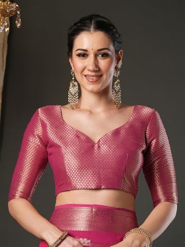 AKHILAM Women's Pink Pure Georgette Ethnic Motif Printed Saree With Unstitched Blouse Piece (KUSUM4001_NSM)