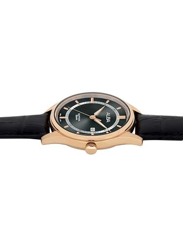 ALBA Leather Women Analog Wristwatch Ah7Br0X1, Black Dial, Silver Band