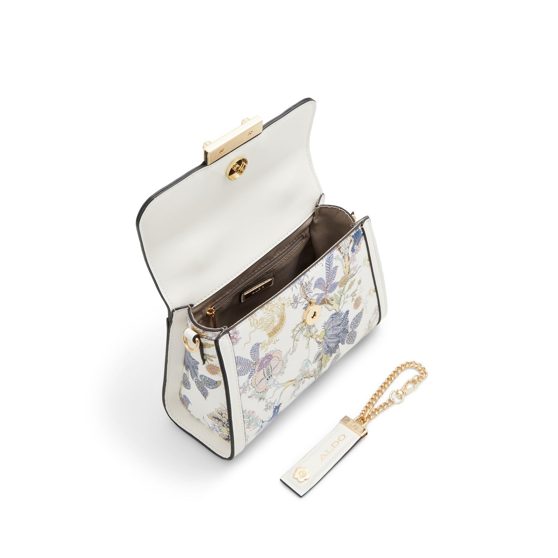 • Chasing something fun and fresh this season? Say hello to our pretty little Aira top handle with versatile crossbody strap. Blue floral finish, gold-tone hardware and just enough room to tuck away the essentials.