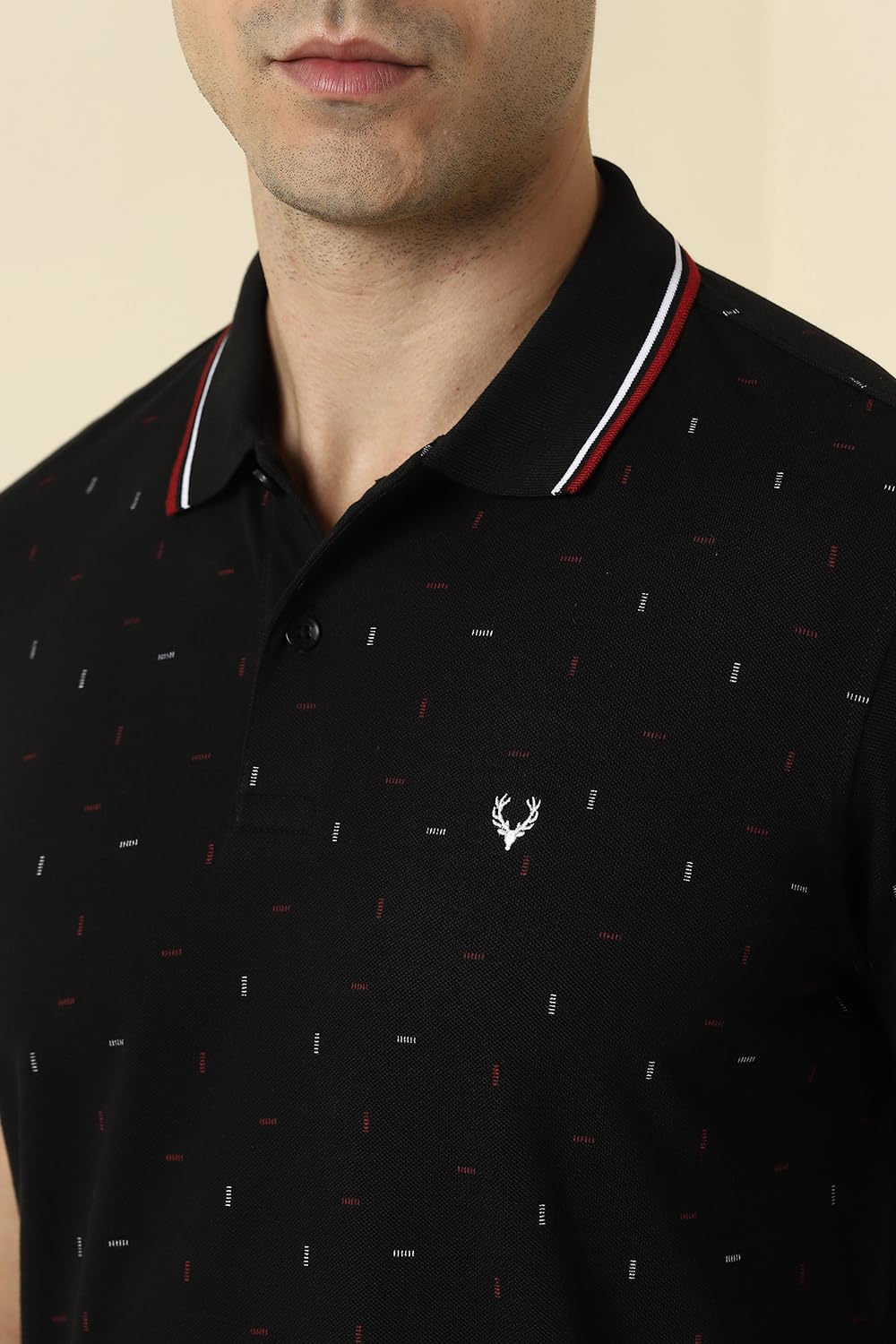 Introducing the Allen Solly men's casual t-shirt, designed for comfort and style. Crafted from a premium blend of cotton and polyester, this white tee features a chic printed design and a classic polo neckline. Perfect for relaxed weekends or casual outings, it brings a fresh touch to your wardrobe. Experience effortless sophistication that seamlessly pairs with your favorite jeans or shorts, making it a must-have staple for every modern man.