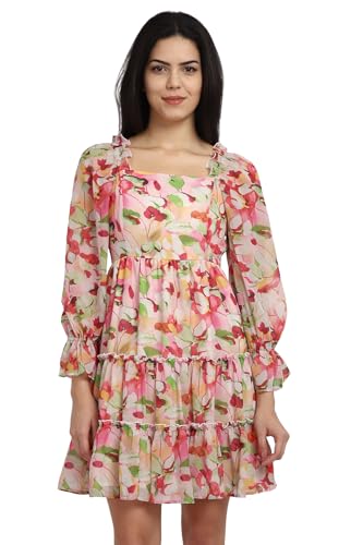 Allen Solly Women's Polyester Asymmetrical Knee-Length Dress (AHDRCRGF142558_Multi Multicolour