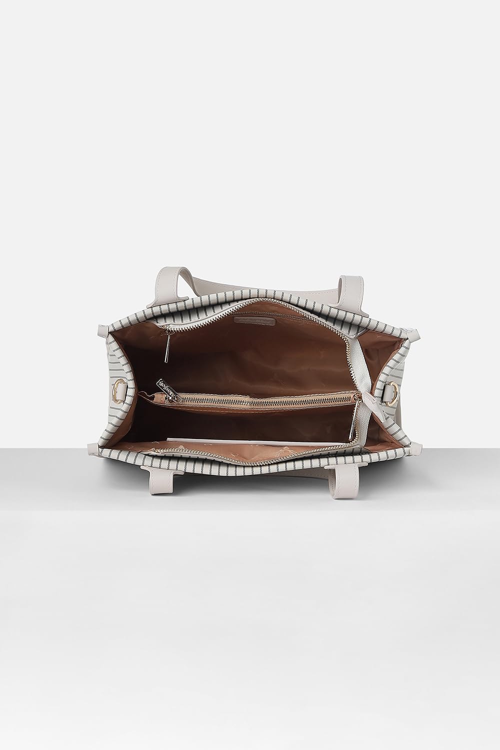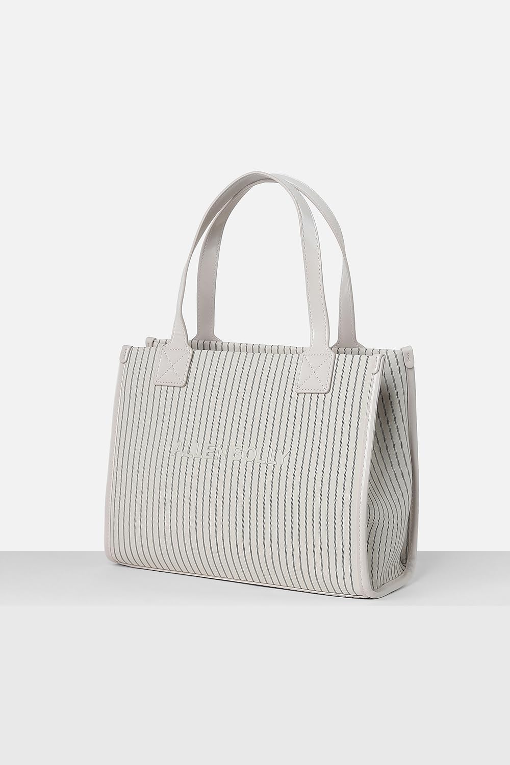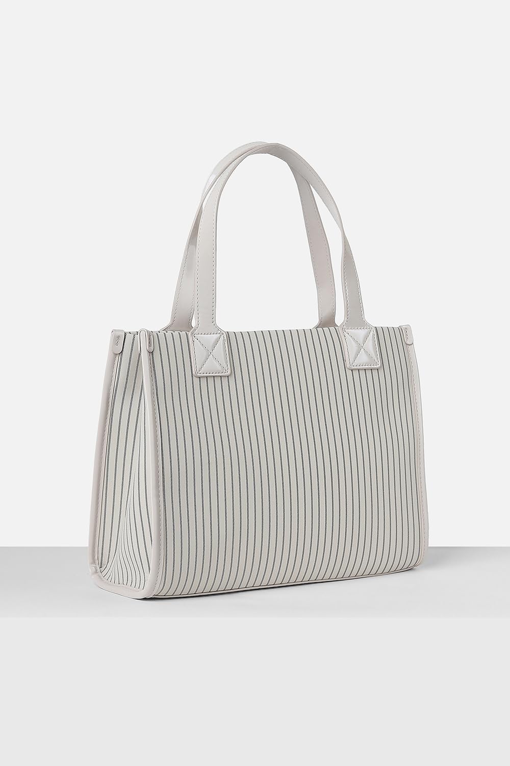 The Allen Solly women's handbag in white offers a chic statement in casual fashion. Crafted from eco-friendly vegan leather, its stylish striped design adds an element of sophistication to any outfit. With ample space for essentials, this handbag effortlessly combines practicality with elegance, making it a perfect companion for day-to-day adventures. Embrace a blend of style and sustainability with this exquisite accessory that enhances your wardrobe beautifully.