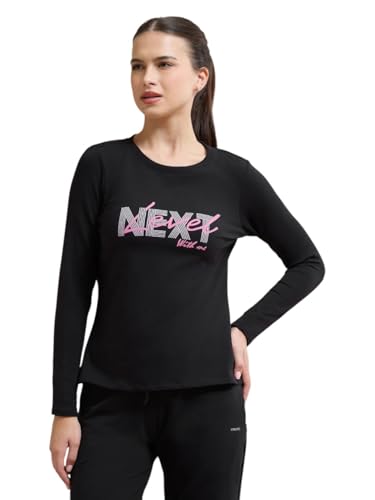 Amante Black Printed Cotton Long Sleeves Women T-Shirt