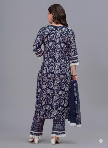 Amayra Women's Pure Cotton Printed Straight Kurta Set with Palazzo Pants & Dupatta- Ethnic Wear, Blue(TCK621,XXL)