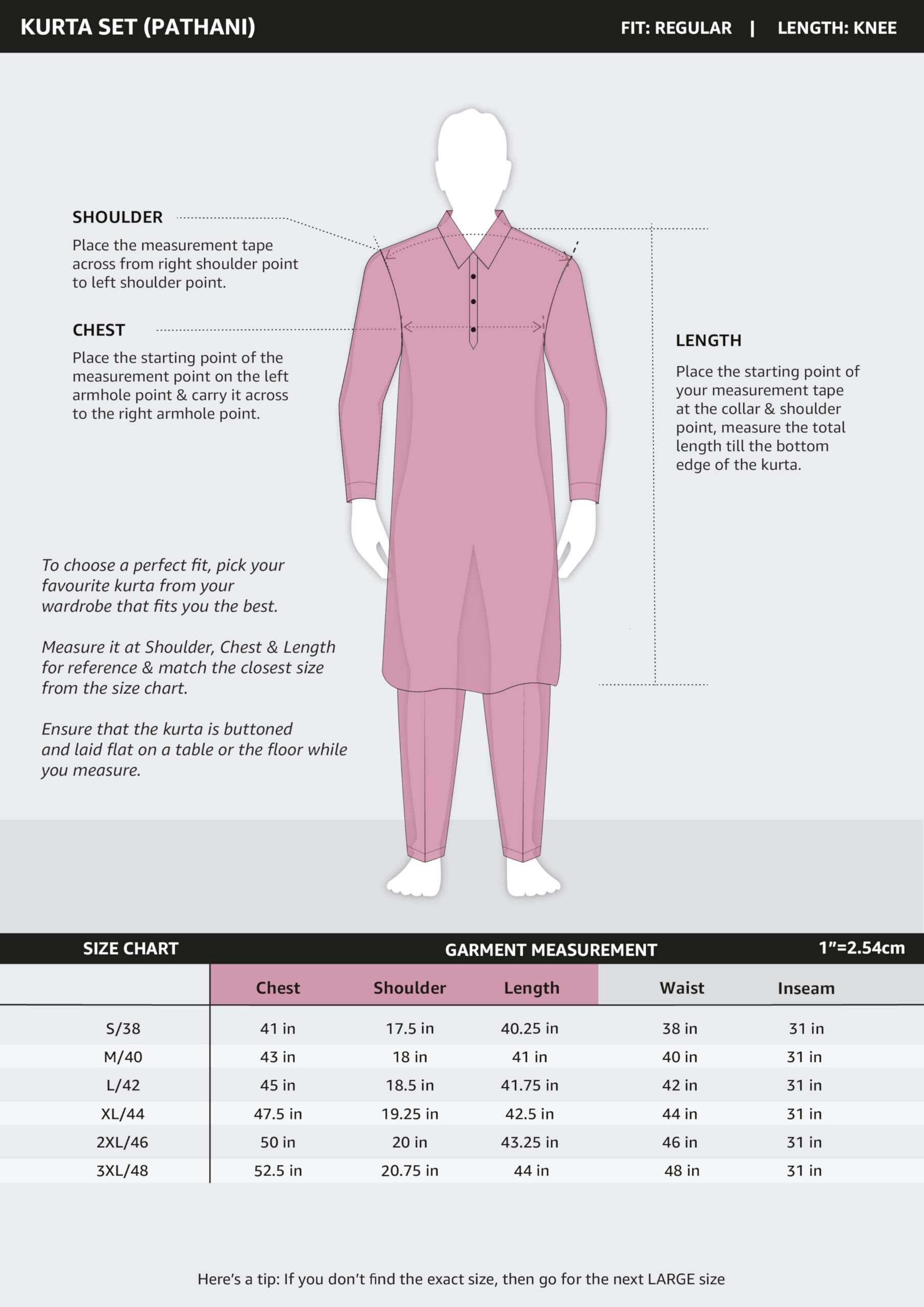 - Style: Pathani Set - Long Kurta (41”) with Pant Set (2pcs)