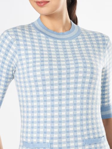 Annabelle by Pantaloons Women's 60% Viscose, 28% Nylon, 12% PBT Classic Knee Length Dress (110151977004_Blue Fog