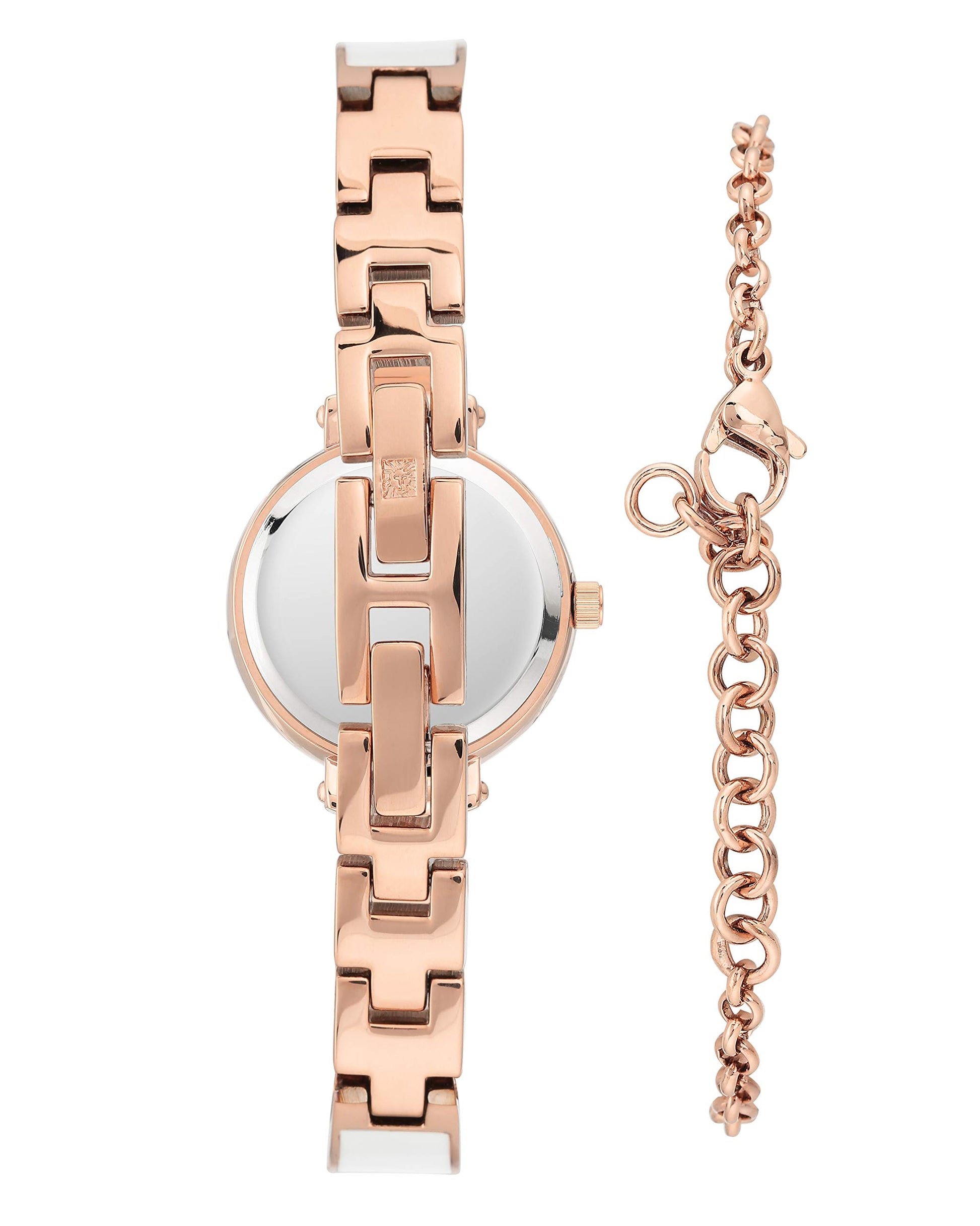 - Set includes one rose gold-tone chain bracelet with white enamel center link
