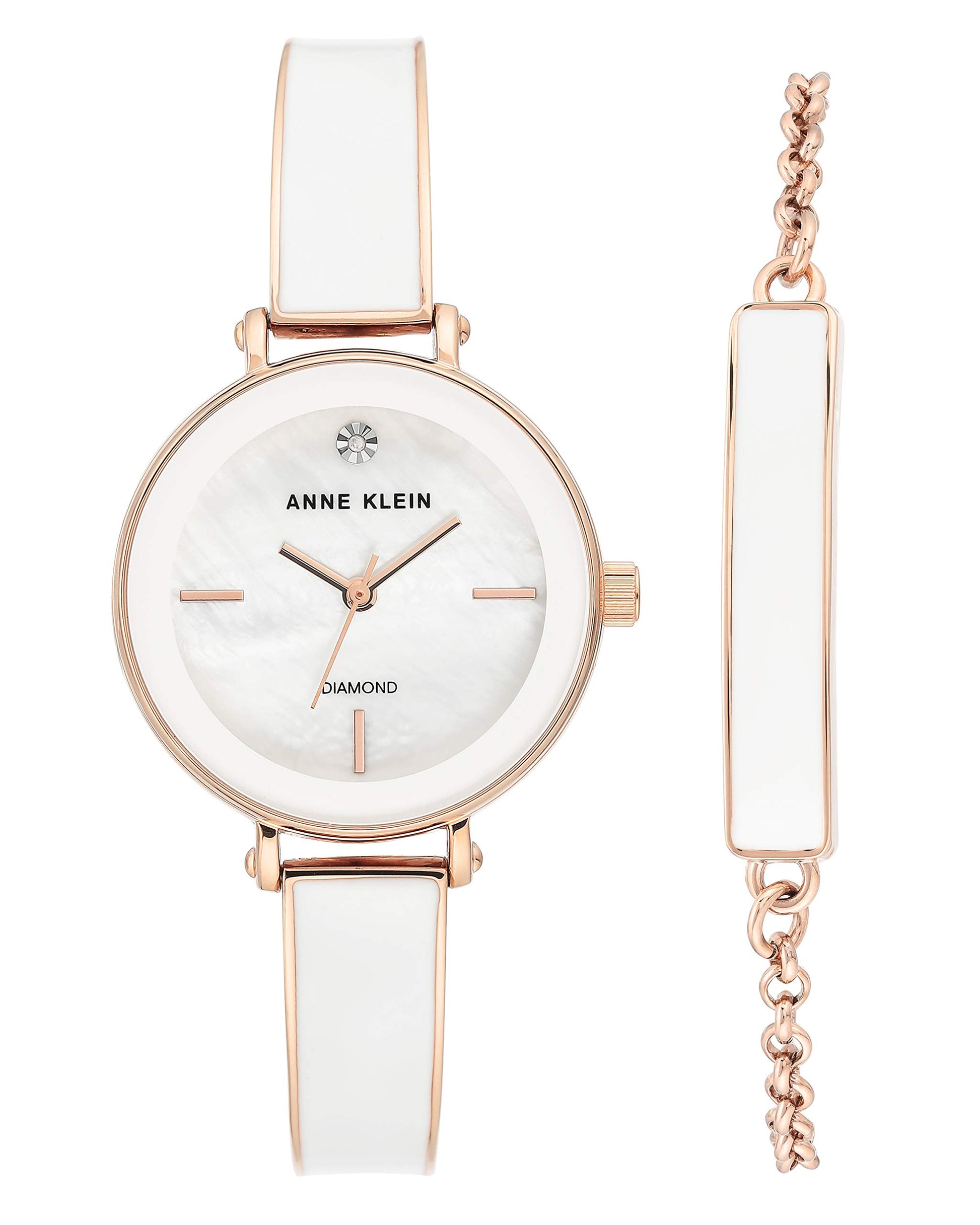 Anne Klein Women's Genuine Diamond Dial Rose Gold-Tone with Bracelet Set, Rose Gold/White