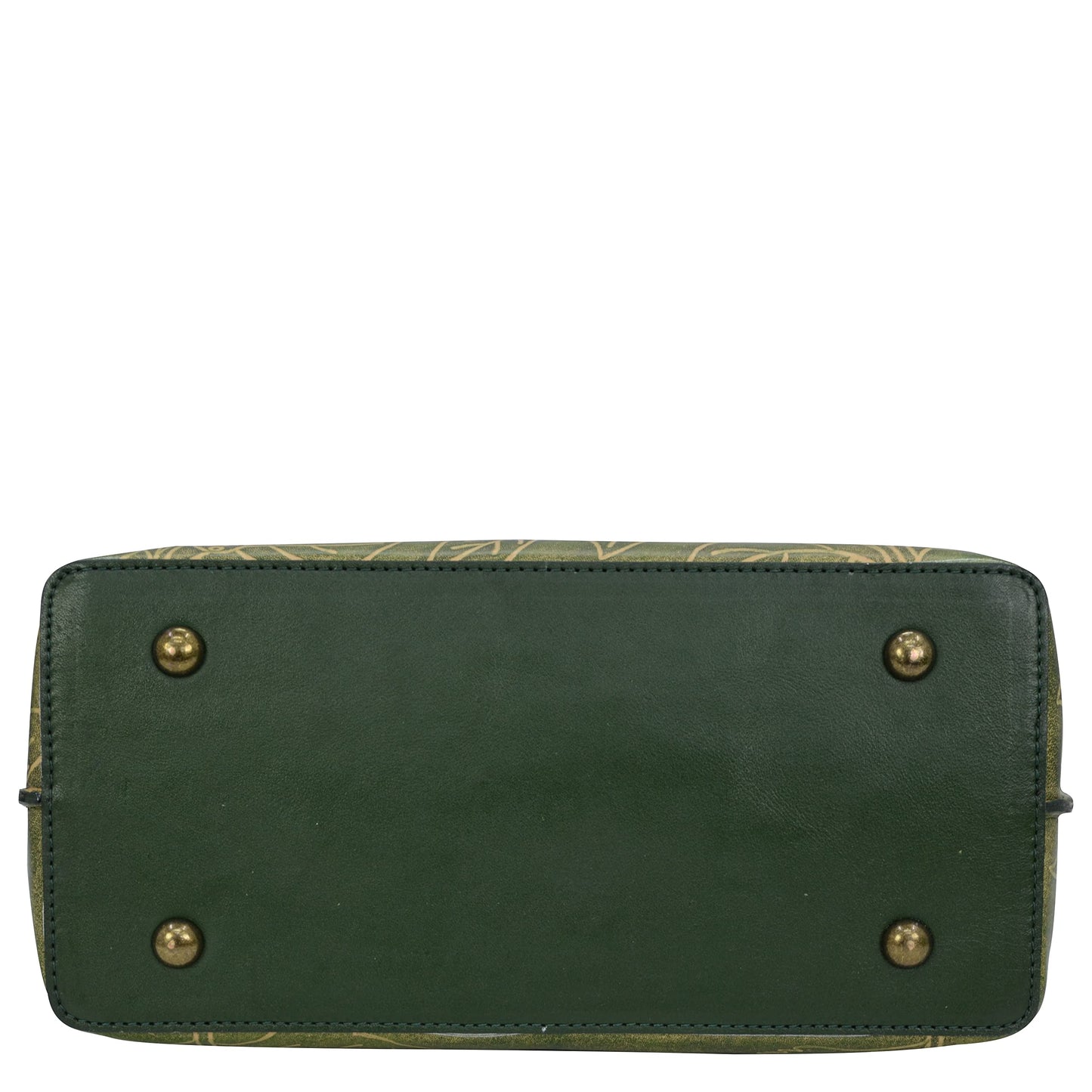 - TOOLED BUTTERFLY JADE ARTWORK - Each bag is hand-painted to create a piece of art inspired by nature and vintage themes. This pattern features incredible tooling line work forming flowers and butterflies, all painted with a rich green colour
