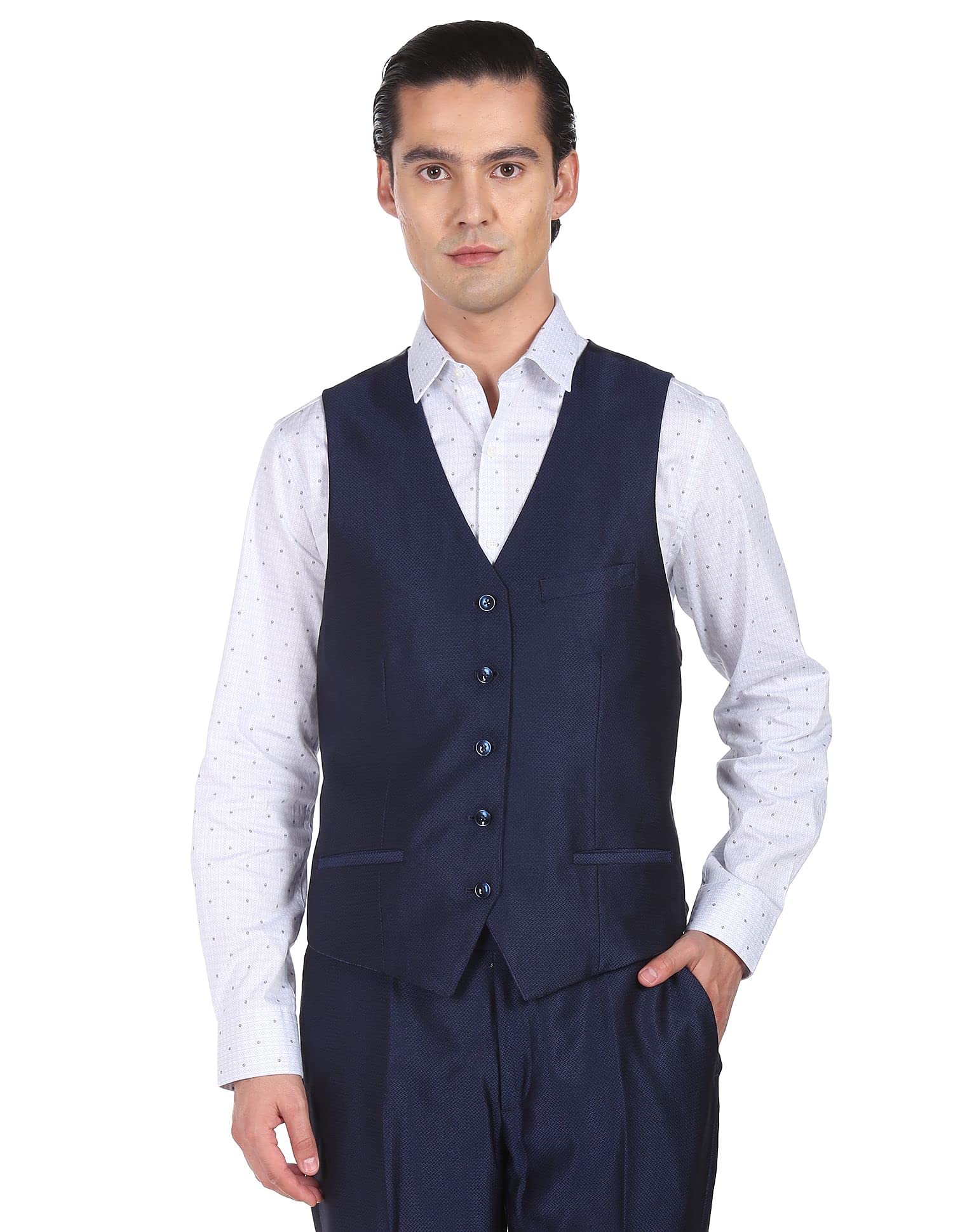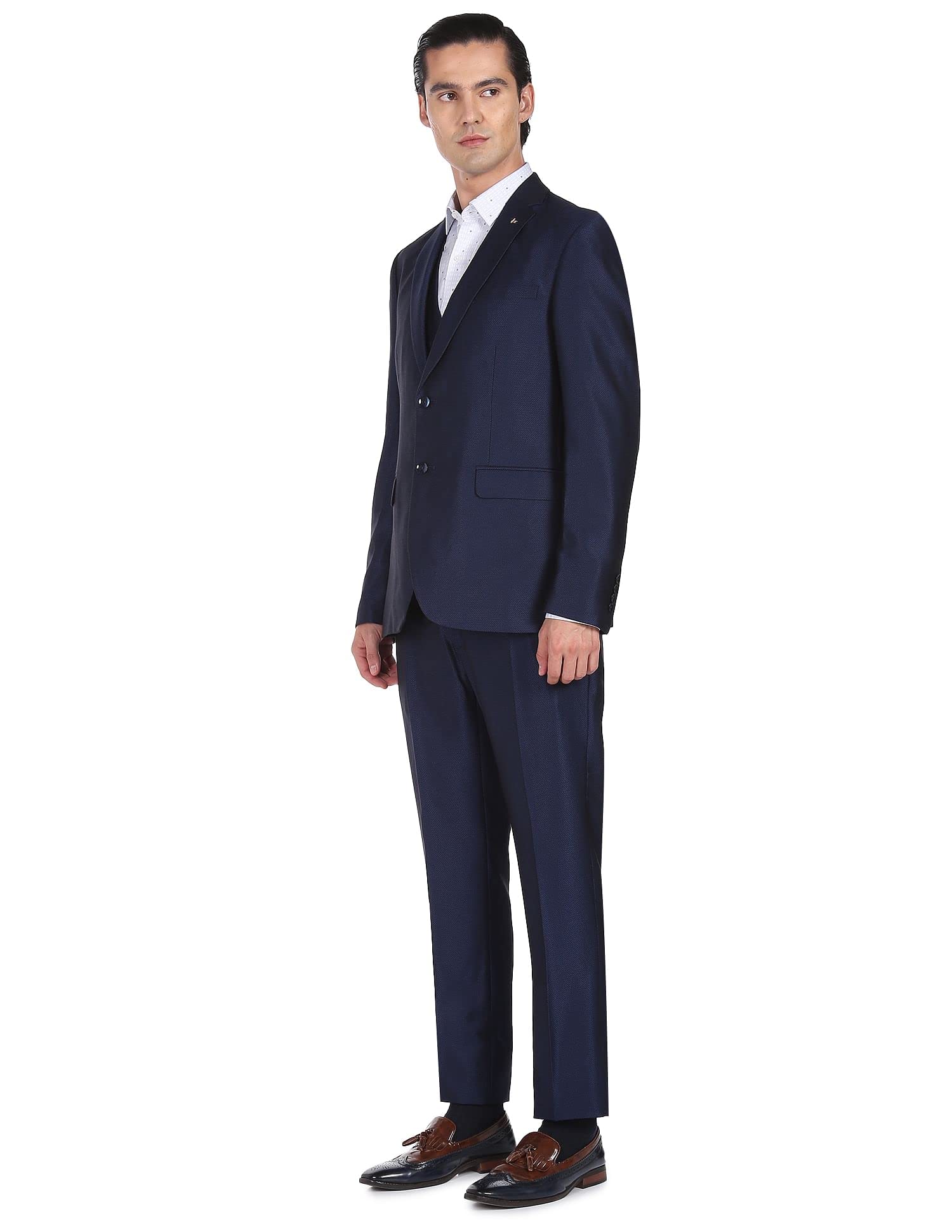 Arrow Men Navy Tailored Regular Fit Solid Three Piece Suit