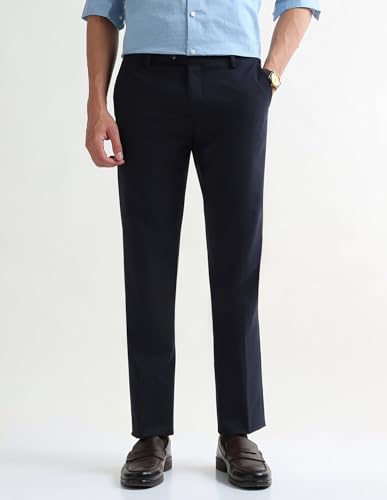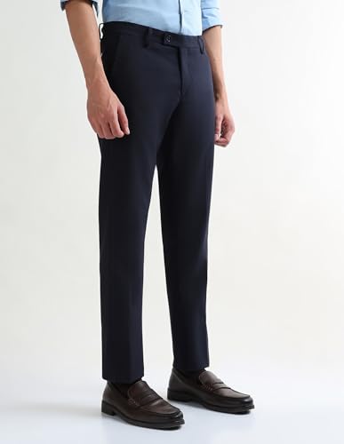 Arrow Men's Dobby Regular Fit Trousers (ARAKTR2039_Navy_38)