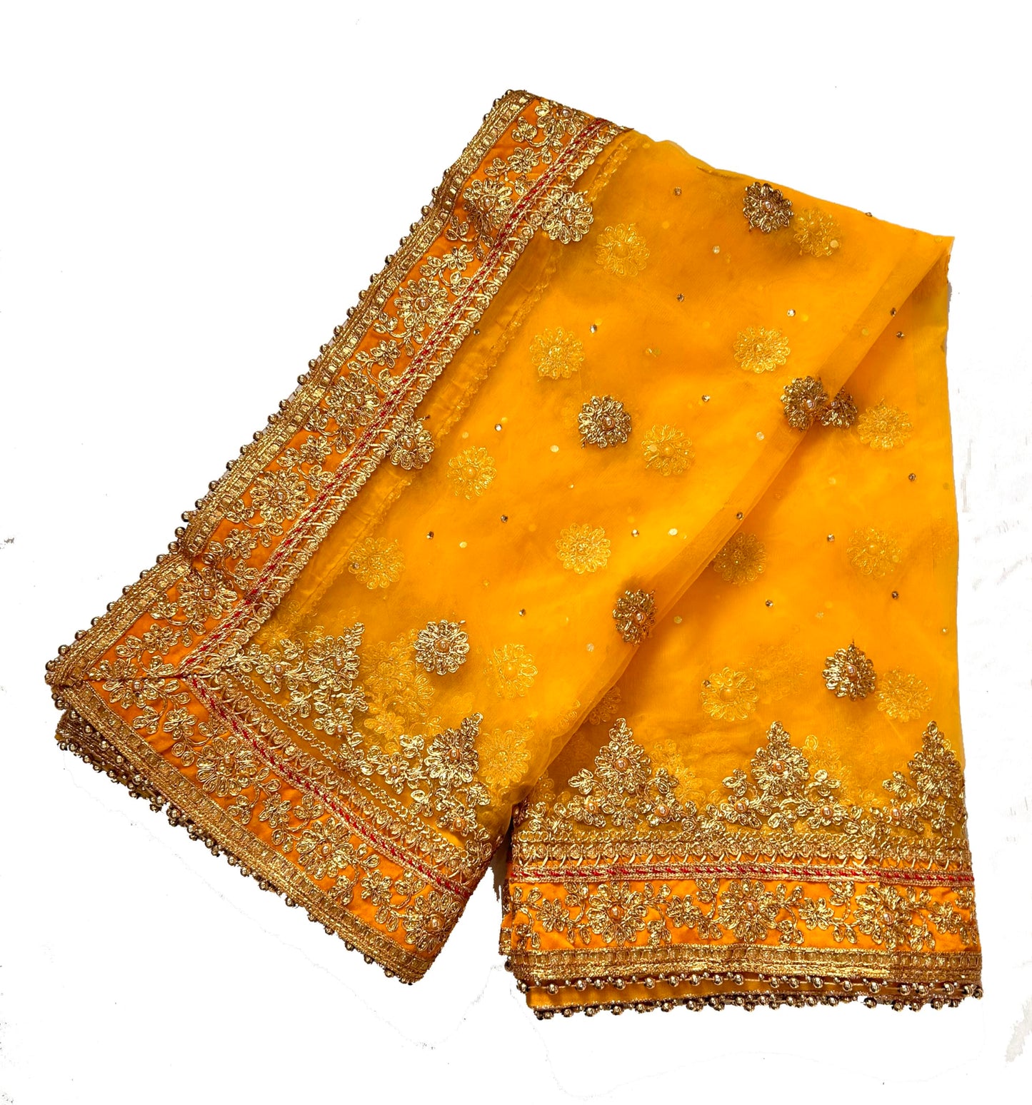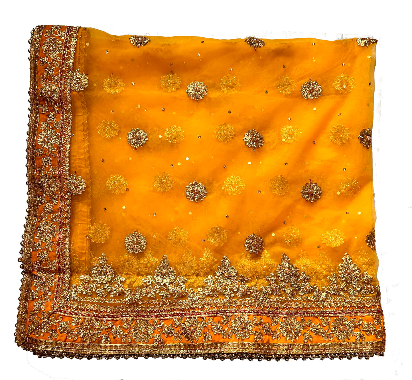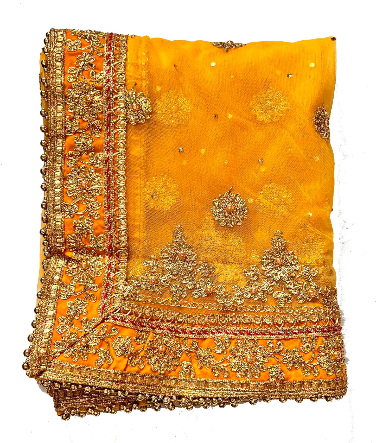 asha chunri house Women Yellow Bridal Dupatta With Velvet Border 2.25 Meter For Wedding