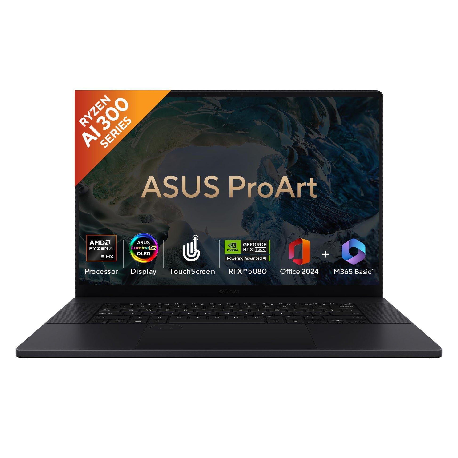 ASUS ProArt P16 OLED (2025), AMD Ryzen AI 9 HX 370, RTX 5080-16GB,64GB RAM, 2TB SSD, 16"/40.64cm Touchscreen, 4K, 120Hz,Windows 11,M365 Basic (1Year)*/Office 2024, Nano Black, 1.95Kg,H7606WW-SE023WS