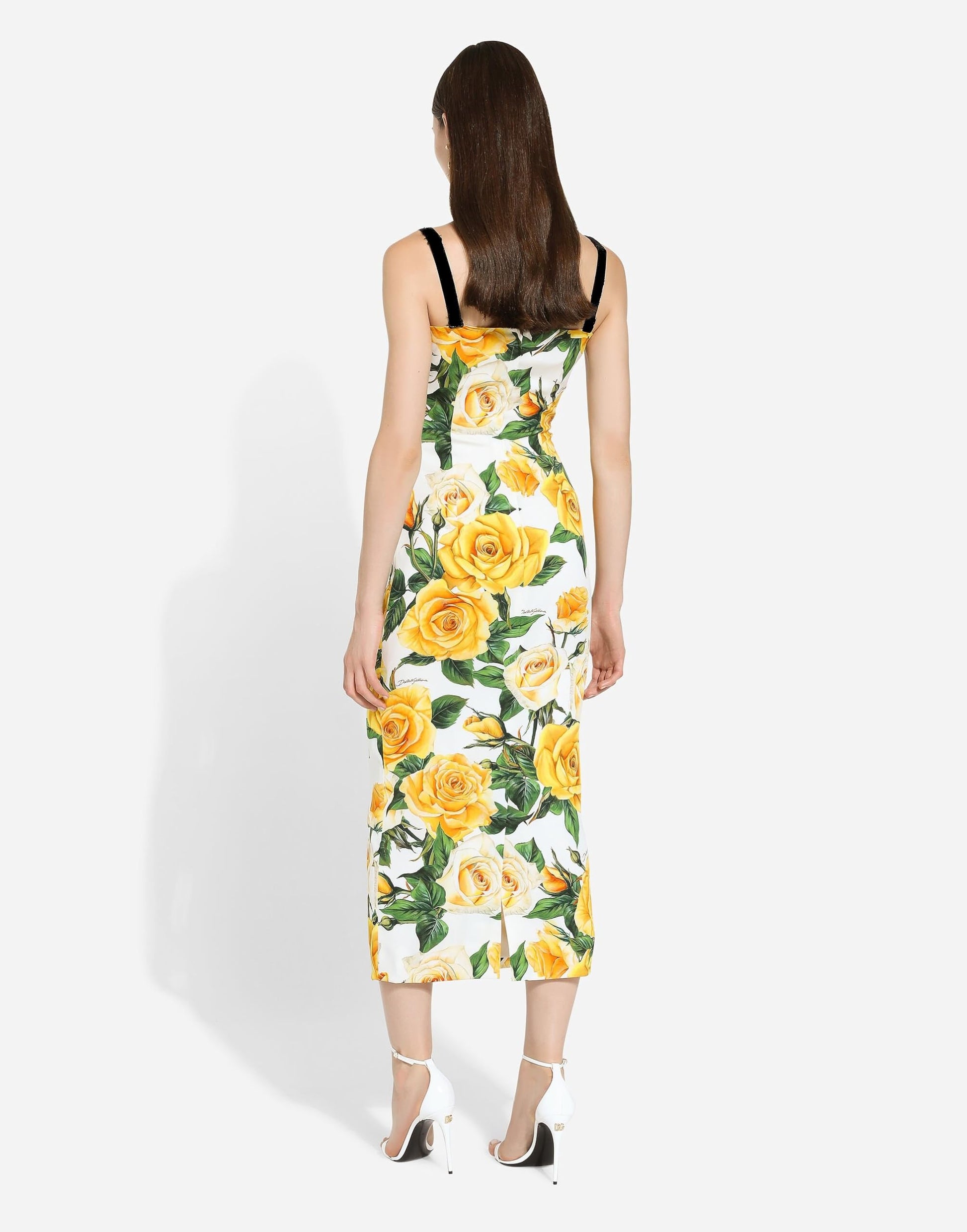 Attire Empire Women White & Yellow Floral Print Split Hem Back Cami Dress