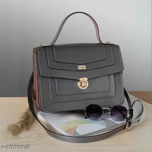 NameBerrylush Women Solid Grey PU One-Handle Detachable Strap Push-Lock Embellished Sling Bag