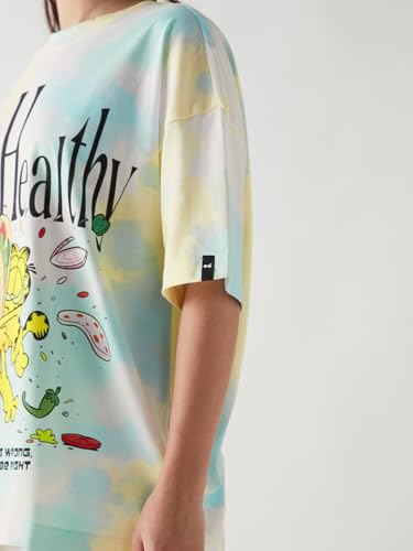 Bewakoof Official Garfield Merchandise Women's Graphic Printed Oversized Fit Half Sleeve Round Neck Cotton Jersey T-Shirt_648815_White_L